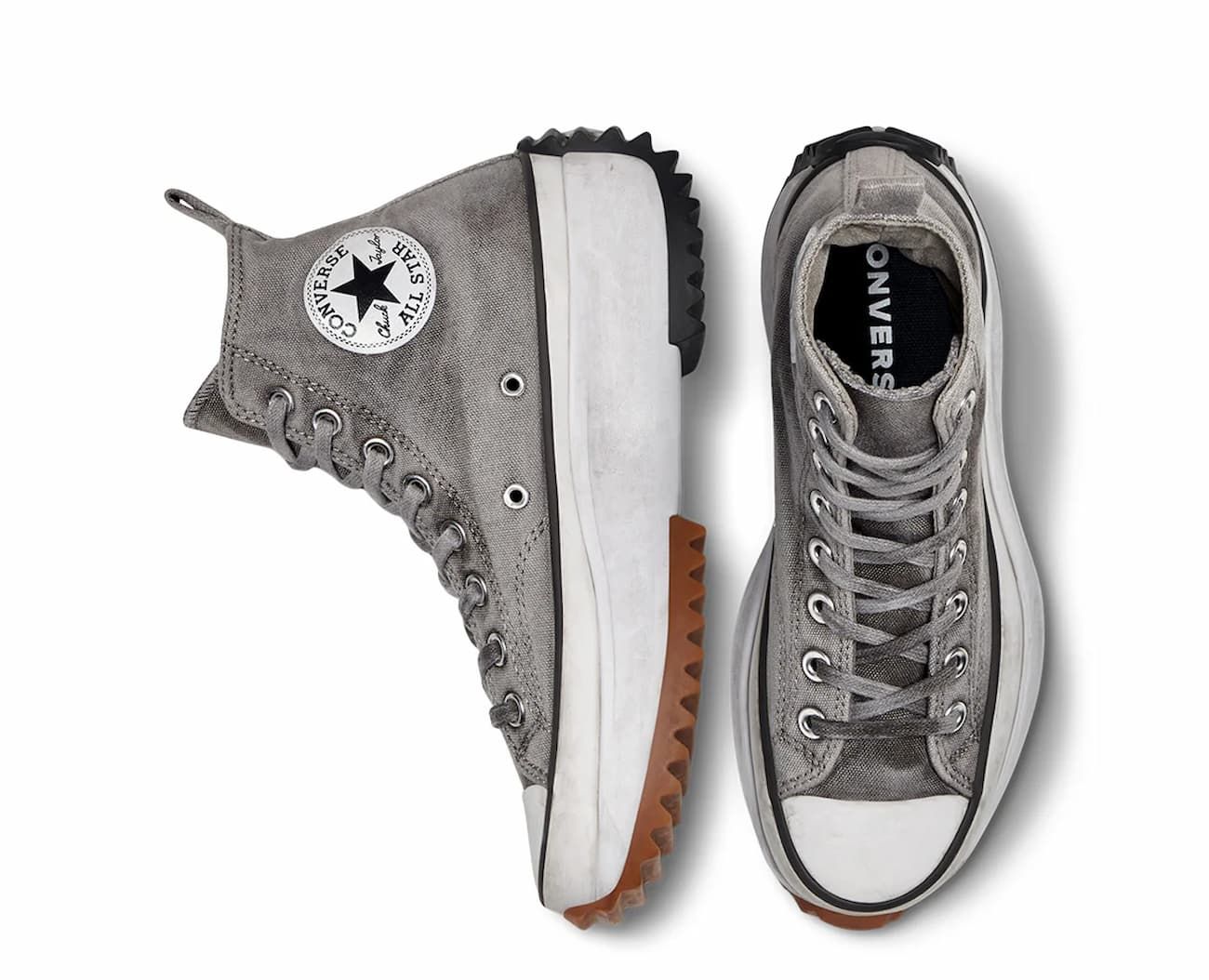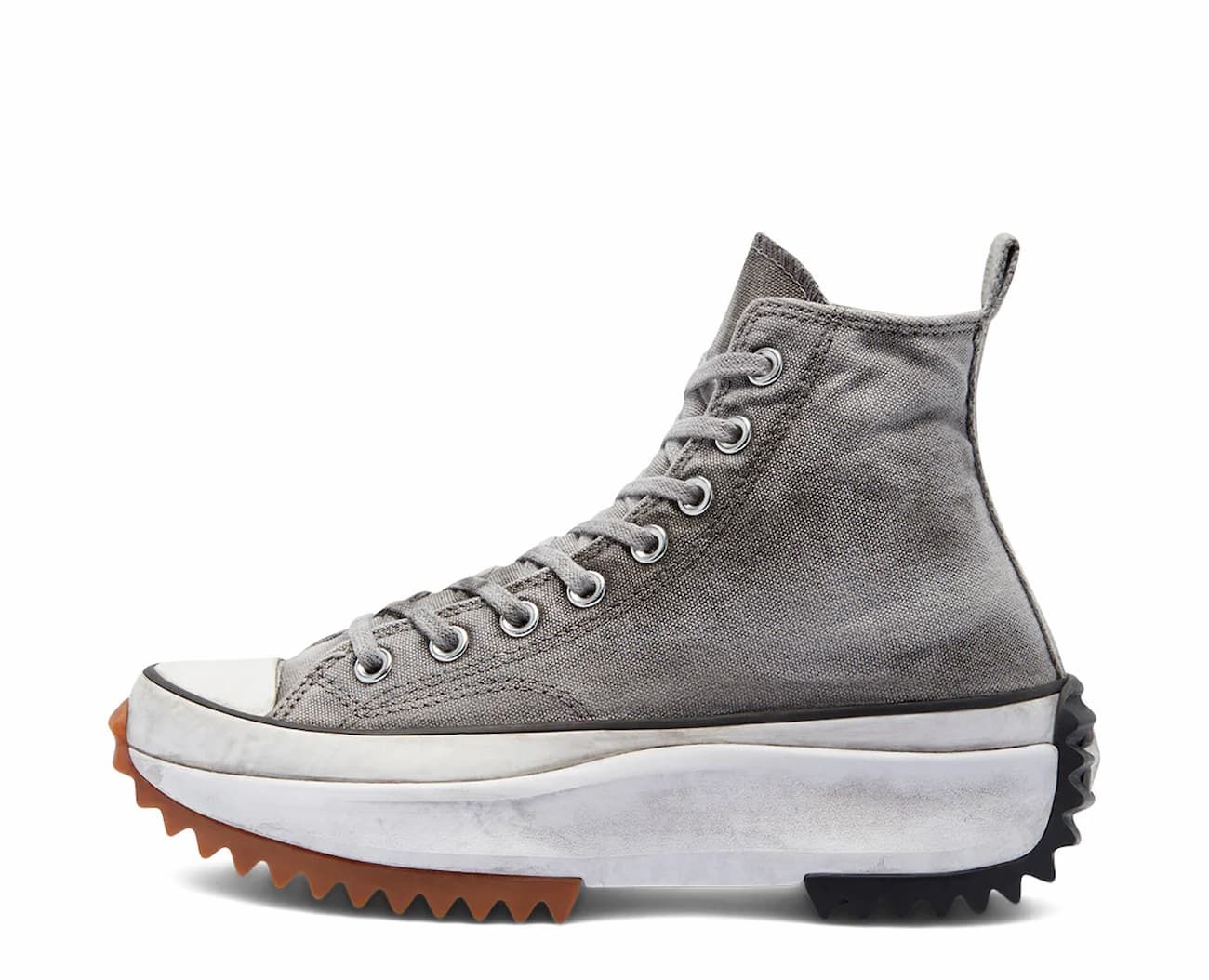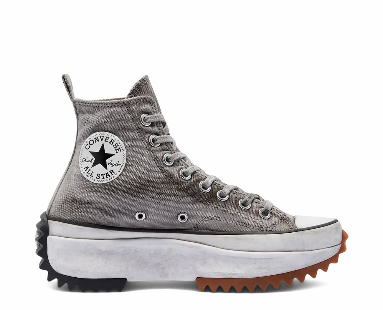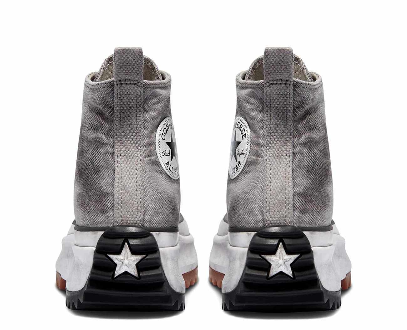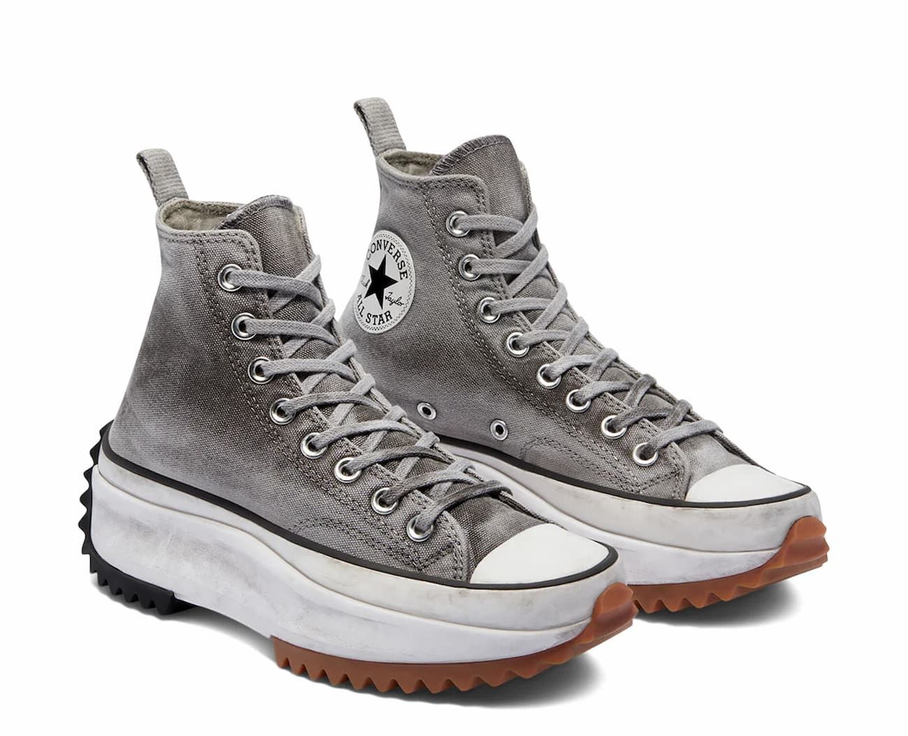 Zapatillas Converse Run Star Hike Platform Smoked Canvas High Top en tono gris y blanco con efecto ahumado para un look gastado, con plataforma y suela dentada para uso urbano diario.