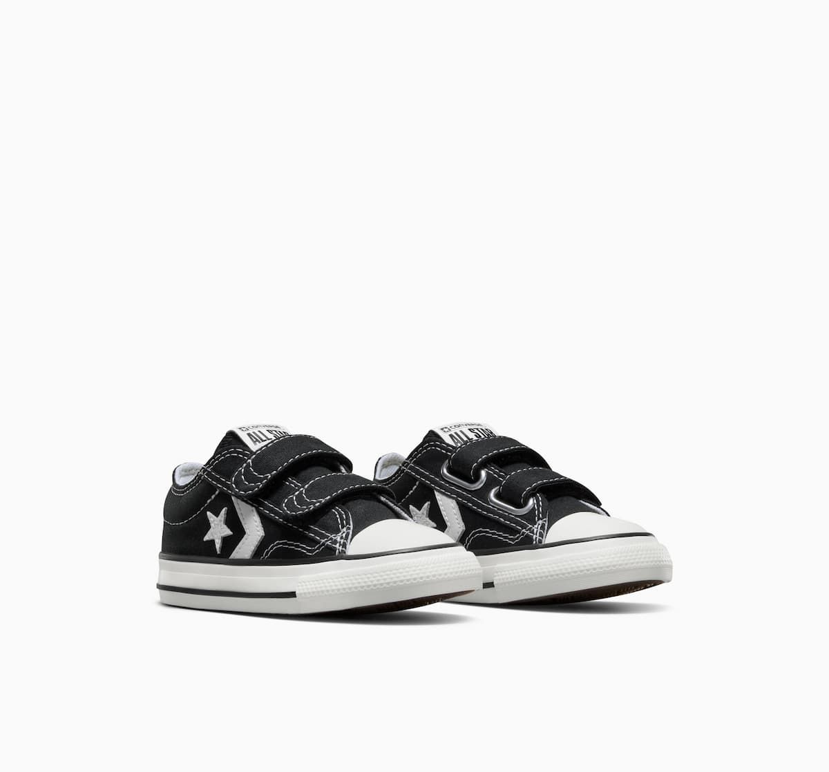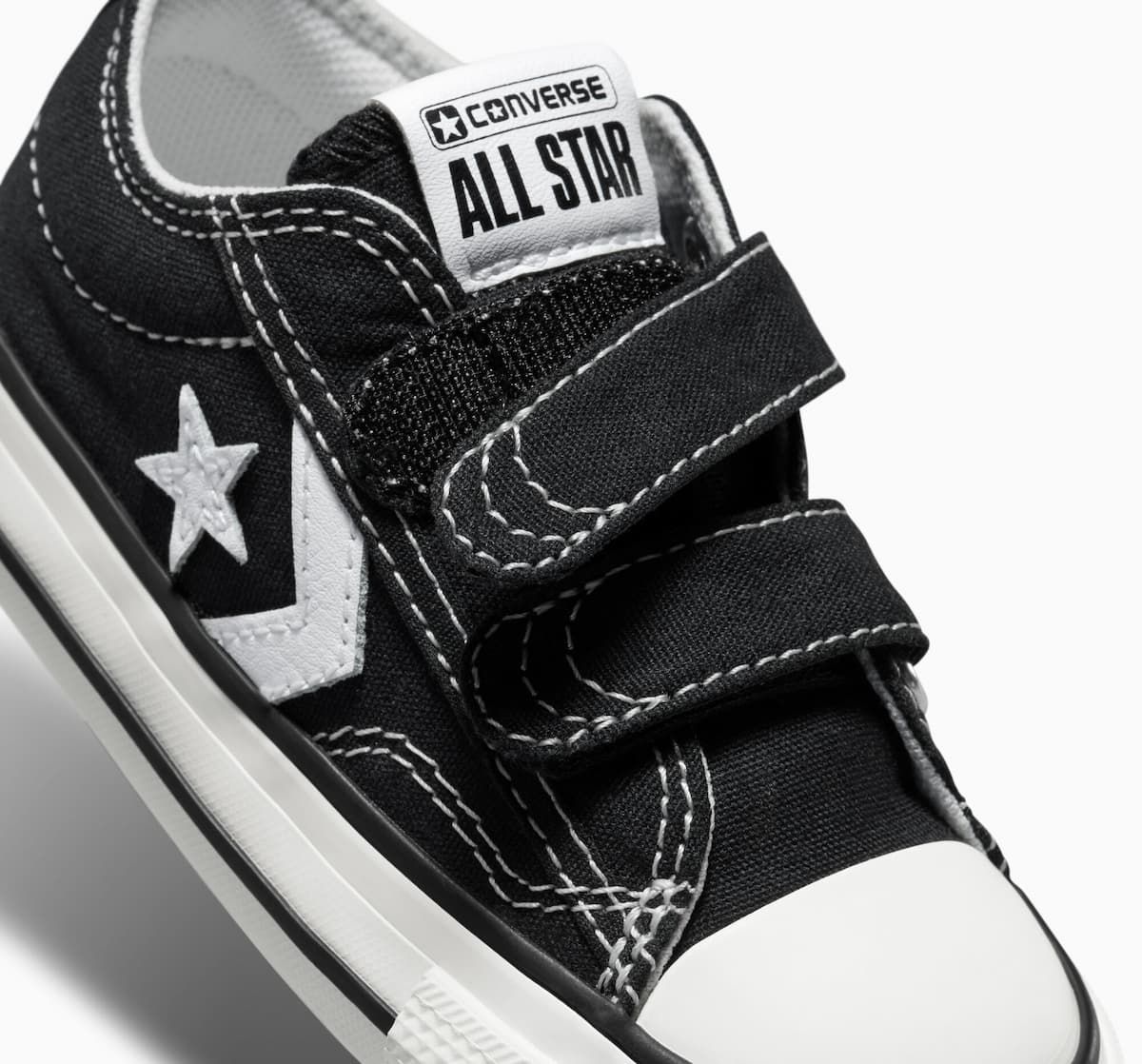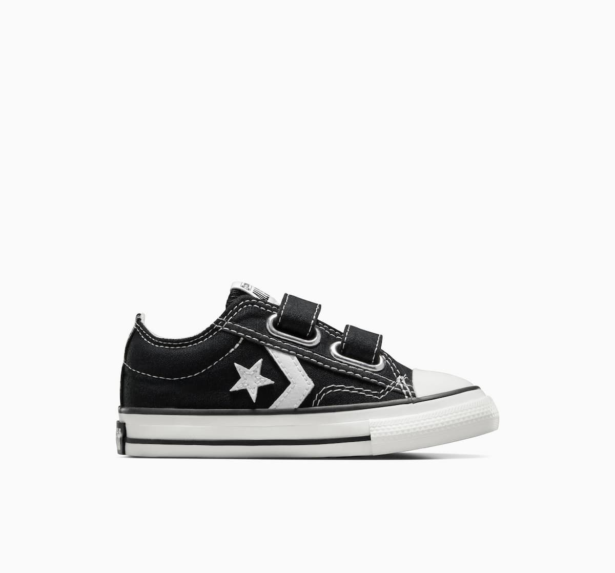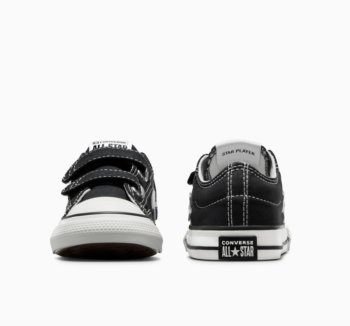 Con las zapatillas de velcro Converse Star Player 76 Foundational Canvas Toddler Low Top negras para niños/as de 1 a 4 años no solo lucirán geniales, sino que también estarán cómodos durante todo el día. ¡No dejes pasar la oportunidad de agregar un toque fresco y vintage al look de los más pequeños!