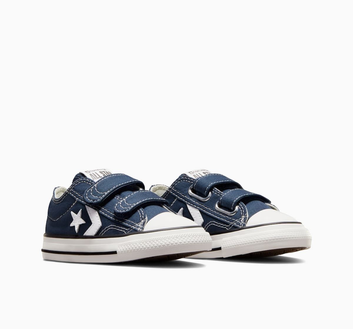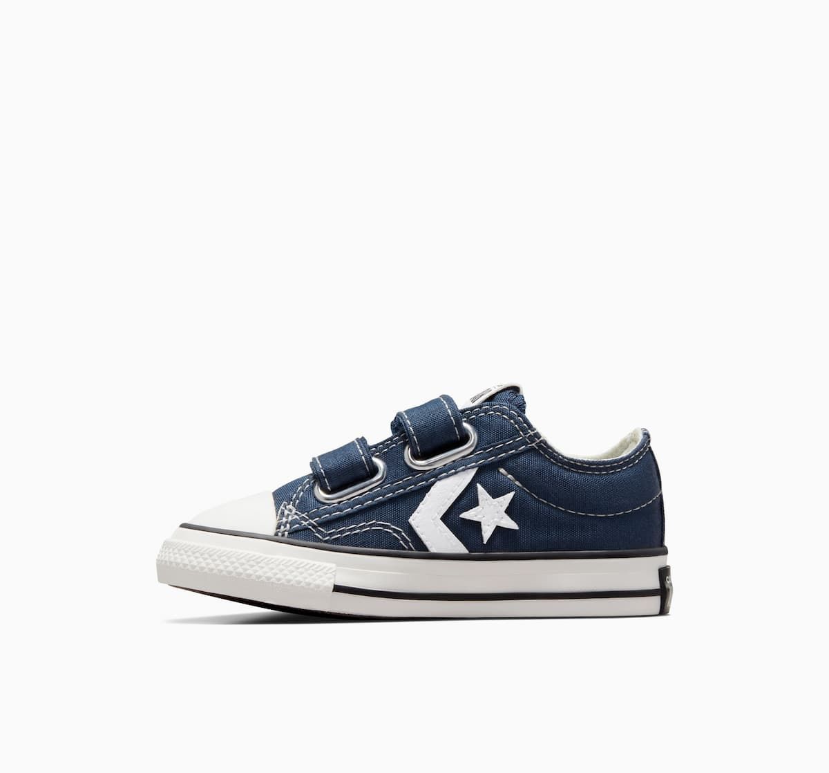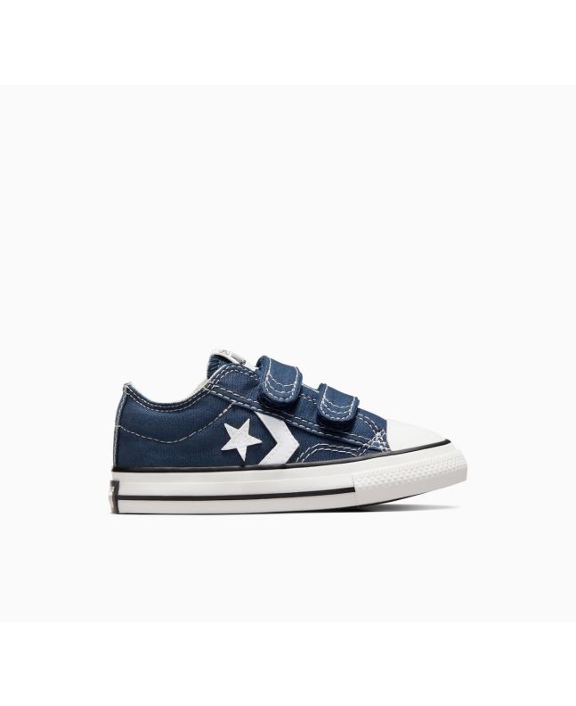 Con las zapatillas de velcro Converse Star Player 76 Foundational Canvas Toddler Low Top azul marino para niños/as de 1 a 4 años no solo lucirán geniales, sino que también estarán cómodos durante todo el día. ¡No dejes pasar la oportunidad de agregar un toque fresco y vintage al look de los más pequeños!