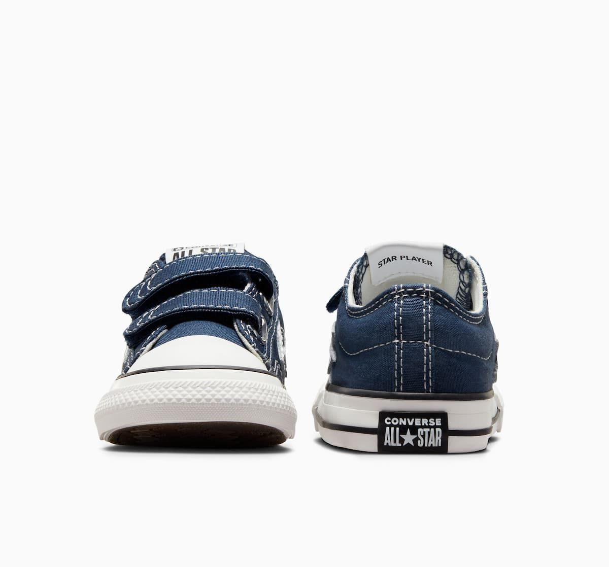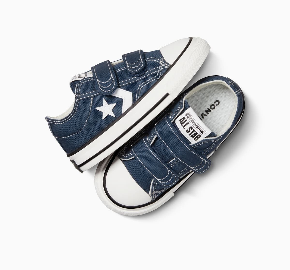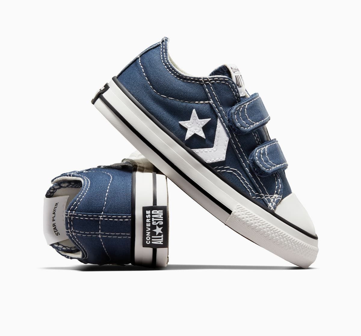 Con las zapatillas de velcro Converse Star Player 76 Foundational Canvas Toddler Low Top azul marino para niños/as de 1 a 4 años no solo lucirán geniales, sino que también estarán cómodos durante todo el día. ¡No dejes pasar la oportunidad de agregar un toque fresco y vintage al look de los más pequeños!