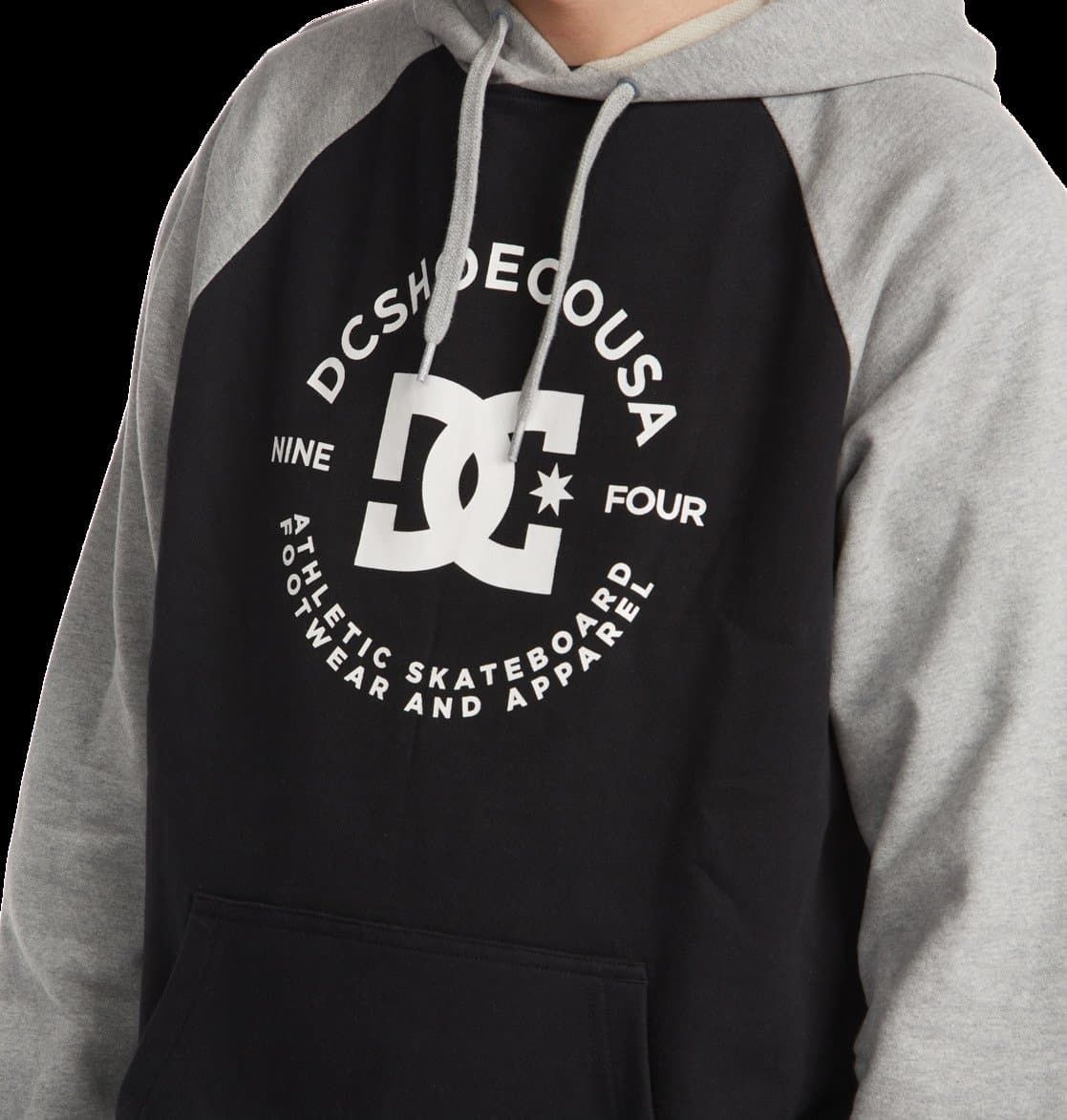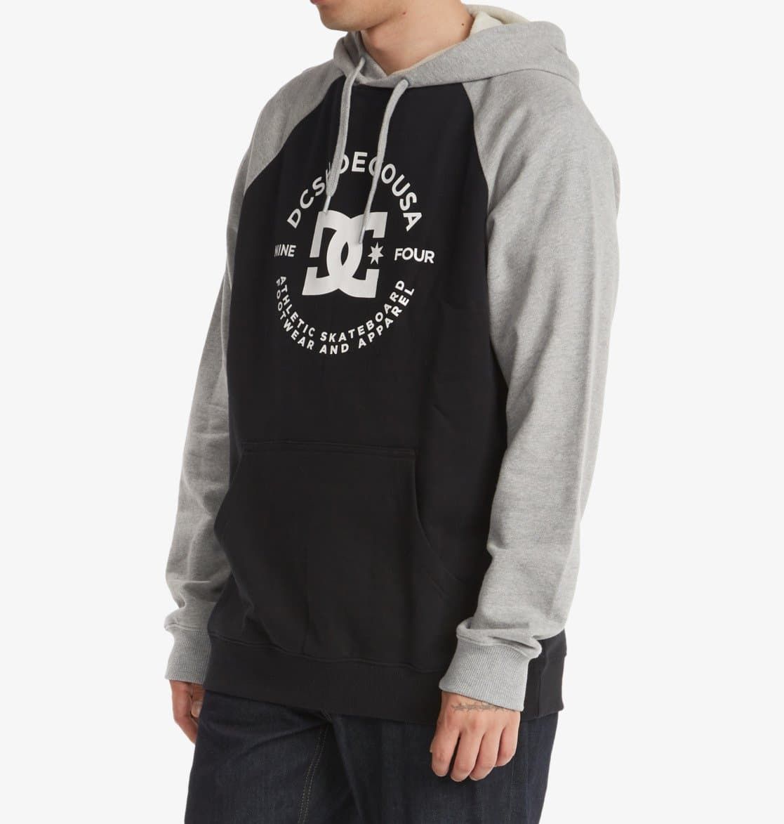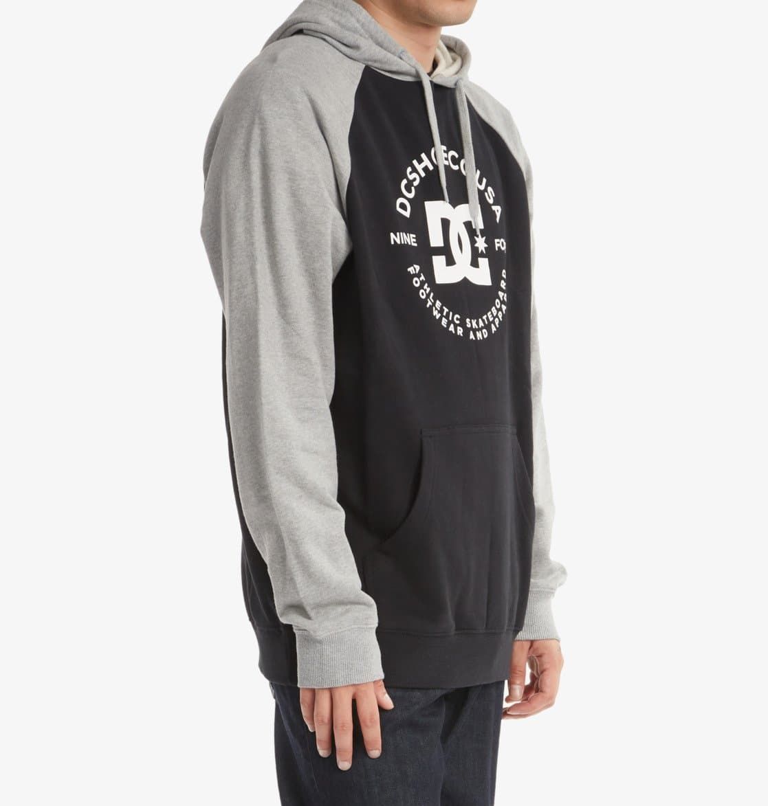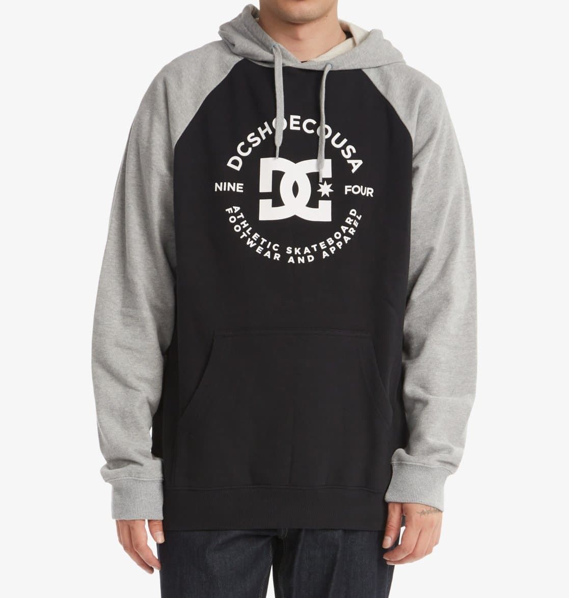 La sudadera con capucha DC Star Pilot está disponible en negro con las mangas y la capucha en color gris (Black-Heather Grey).