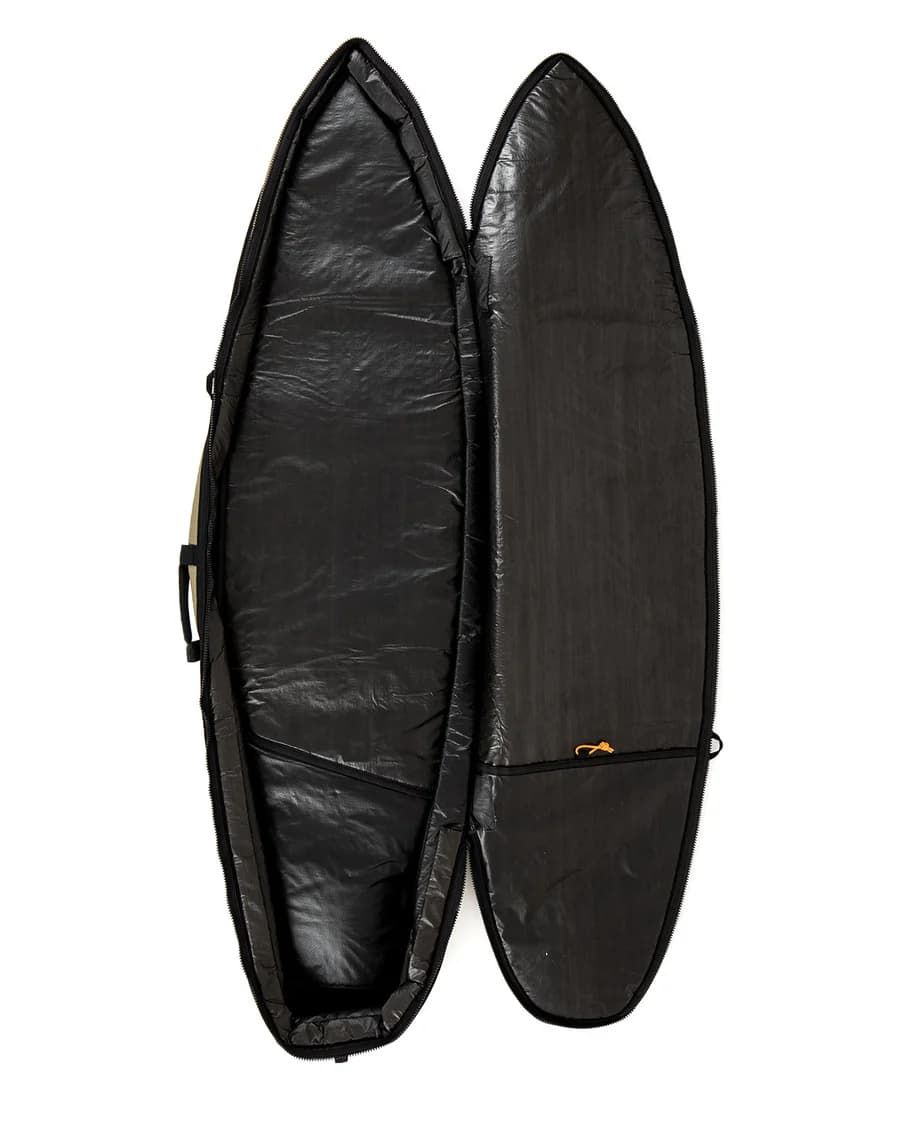 Protección reforzada y tejido técnico en una funda doble para shortboards de Creatures.