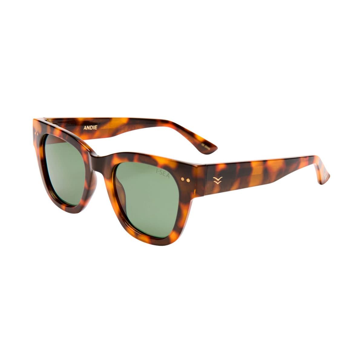 Las I-SEA Andie Tortoise/Green combinan montura carey, lentes verdes polarizadas y protección UV total. Elegancia con alma surfera para el día a día.
