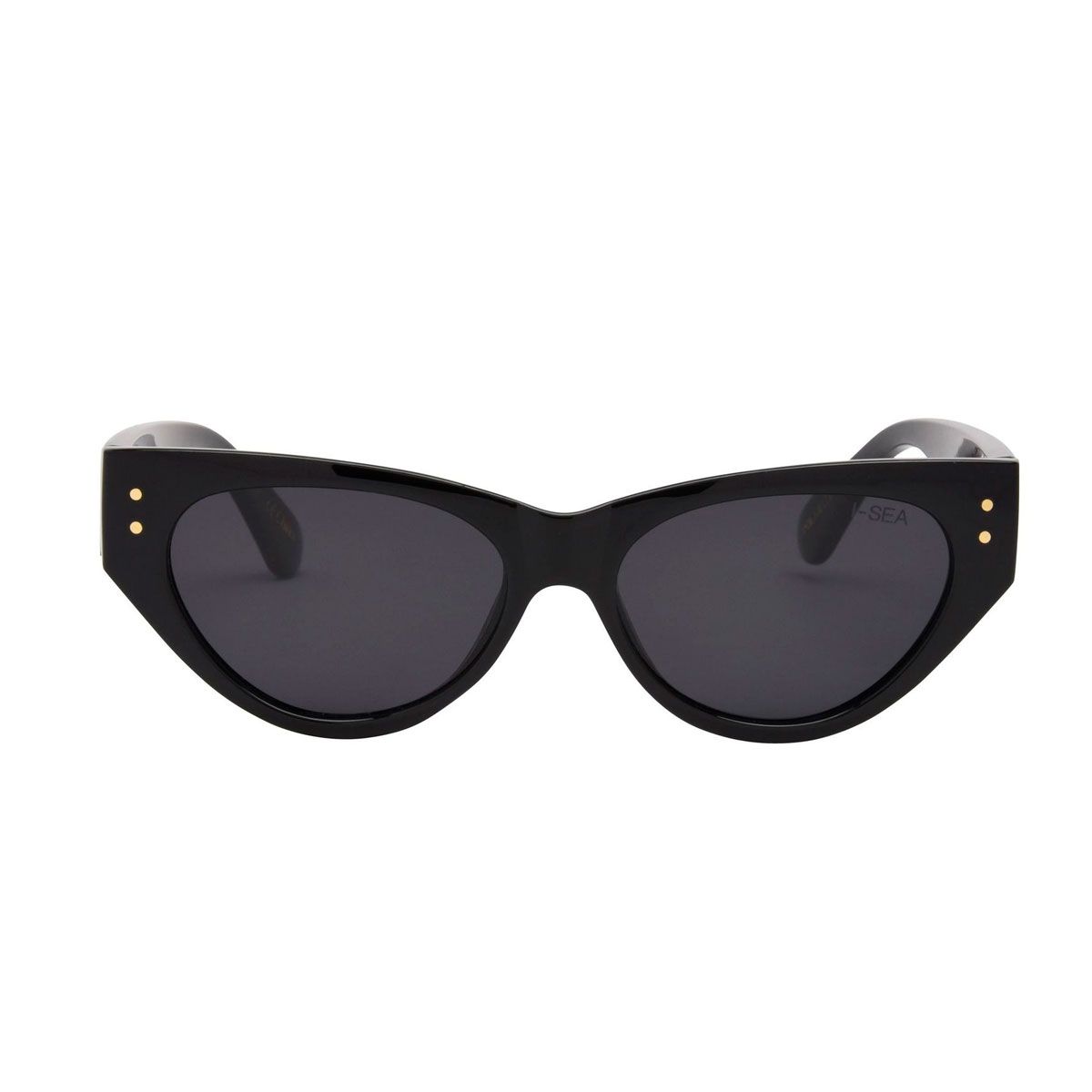 Gafas I-SEA Carly Black/Smoke con forma cat eye, lentes polarizadas y montura negra brillante. Glamour surfero con protección UV total.