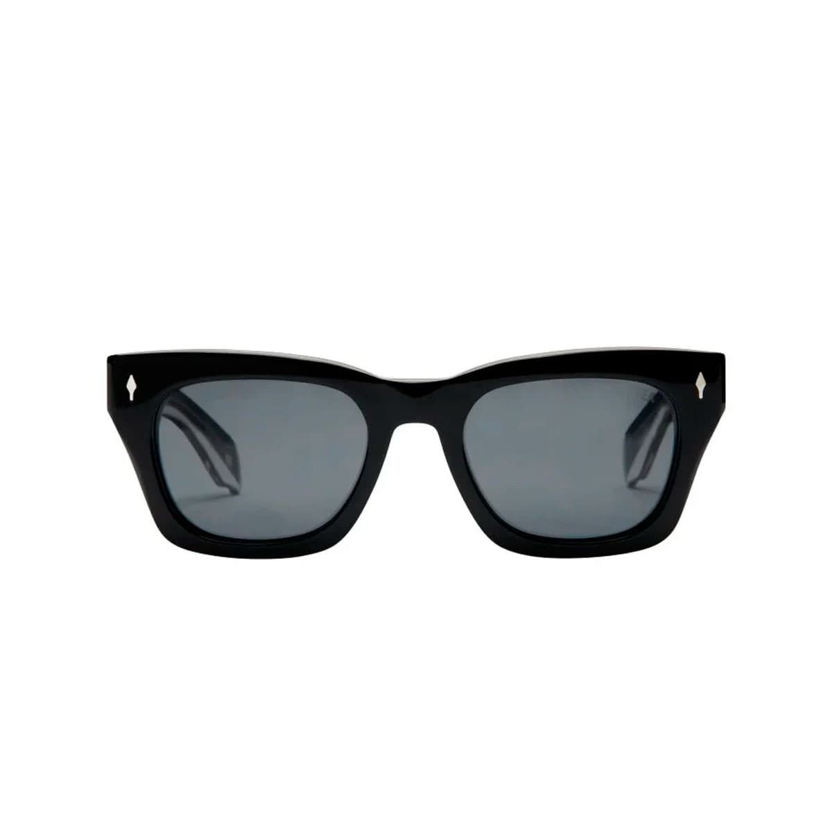 Montura rectangular en acetato negro de alto brillo.
