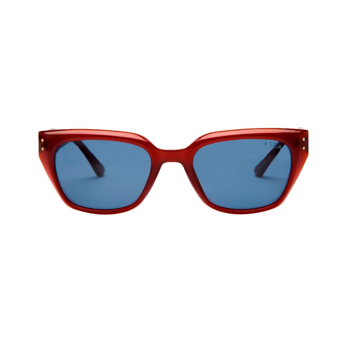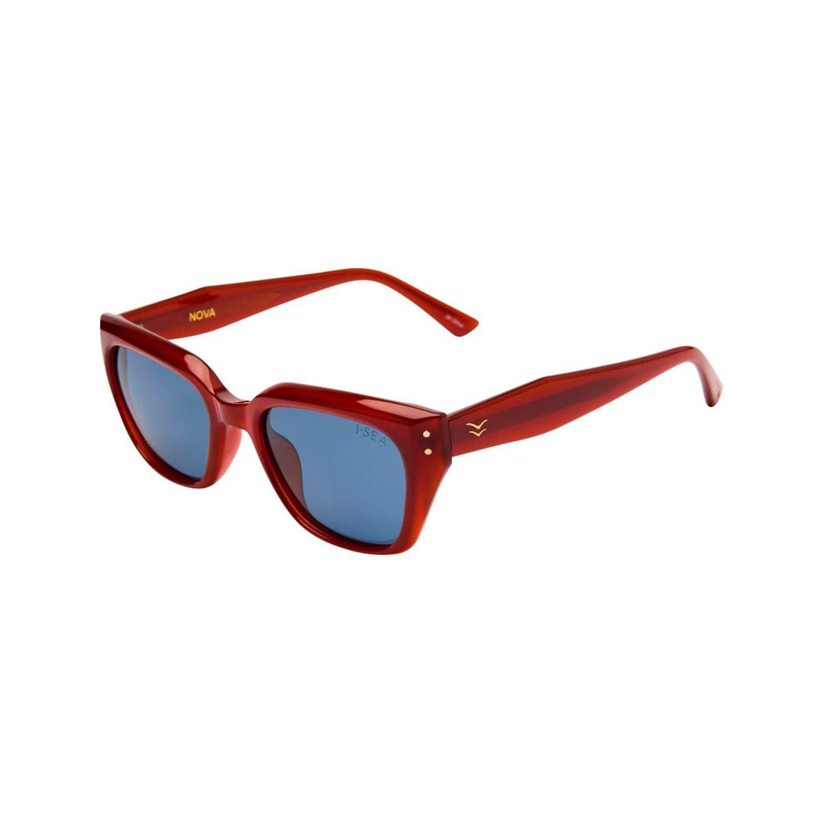 Diseño envolvente, acabado rojo jengibre y lentes polarizadas azul cielo: las gafas I-SEA Nova combinan protección y personalidad para tus días al sol.
