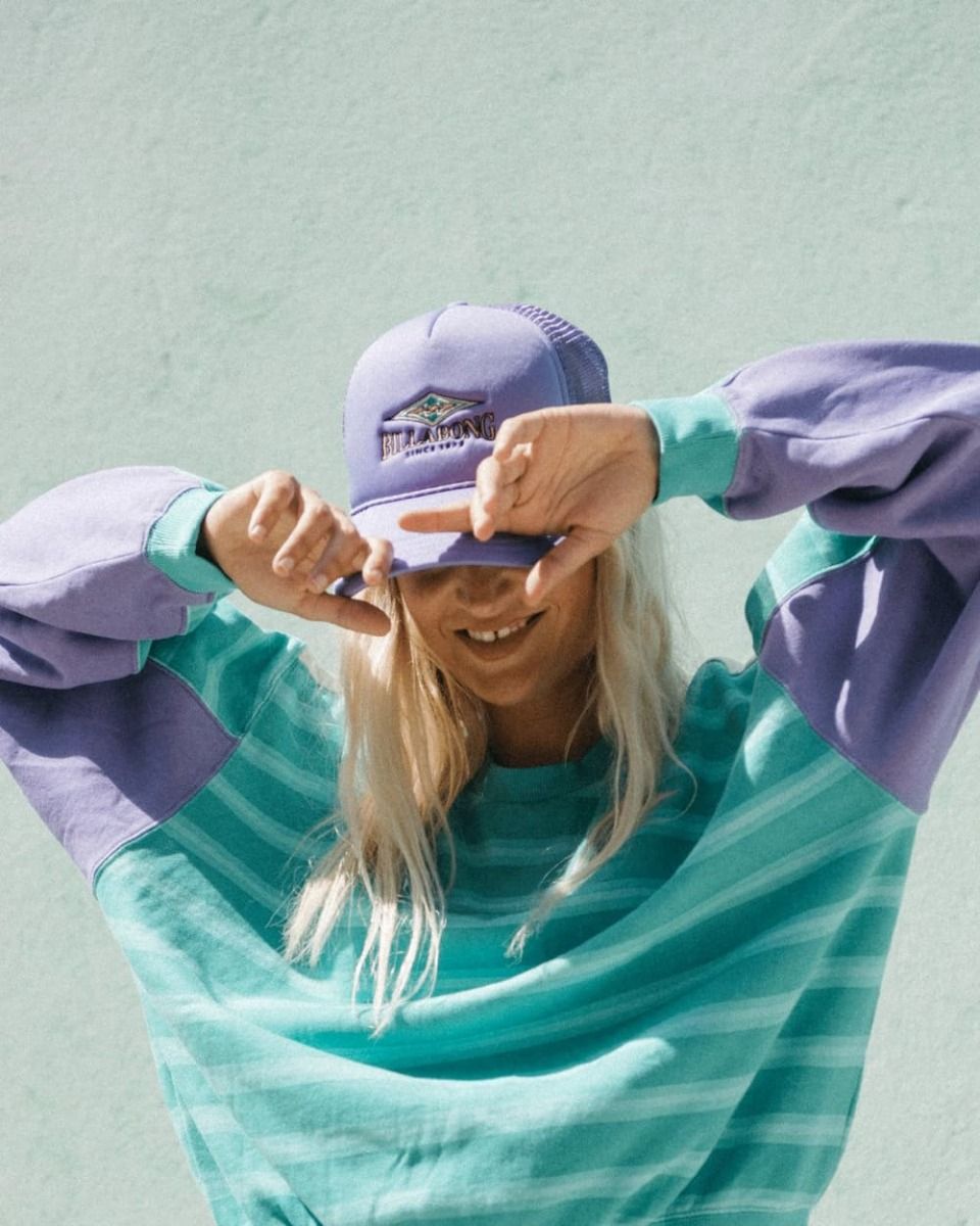 El logo bordado en el frontal refleja la esencia “Since 1973”, un guiño a la herencia de Billabong en el surf y la cultura costera. El acabado en color Purple Ash da un toque actual y femenino que combina fácilmente con camisetas, sudaderas o bikinis de la marca.