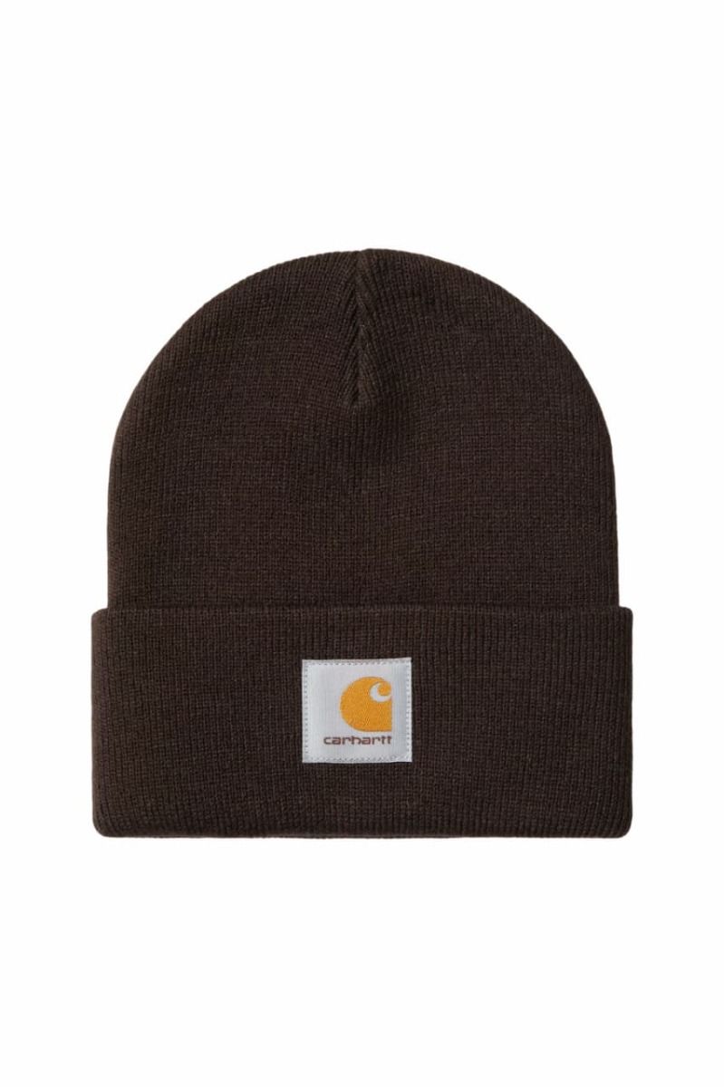 Gorro unisex Carhartt WIP cálido y cómodo con tejido acrílico y logo icónico en color marrón Tobacco.