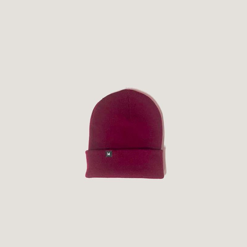 Este cálido beanie Unisex en un tono burdeos de inspiración otoñal cuenta con punto canalé elástico que se adapta cómodamente a tu cabeza, puño vuelto y una pequeña etiqueta con la "M" de Mission tejida en el puño.