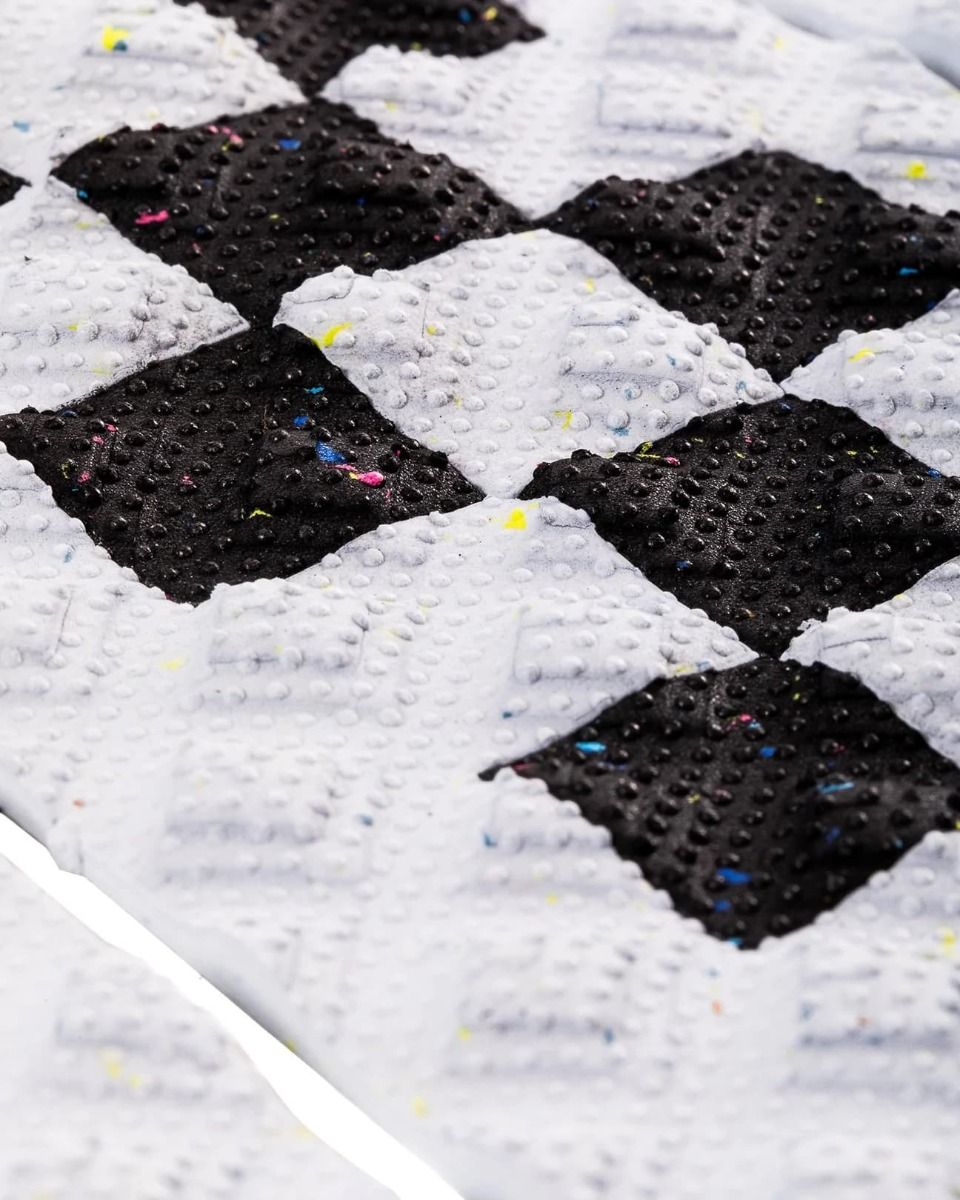 El grip para tabla de surf Jack Freestone Lite Ecopure® en color plateado con estampado a cuadros (Platinum Eco Carbon Chex) de Creatures está fabricado con espuma biodegradable EcoPure®.