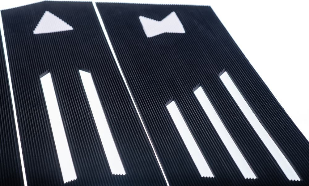 Este front Pad de tres piezas, especialmente diseñado para funboards y maniobras aéreas, cuenta con textura Corduroy y fijación con 3M Power Glue