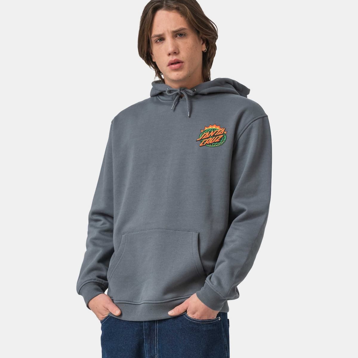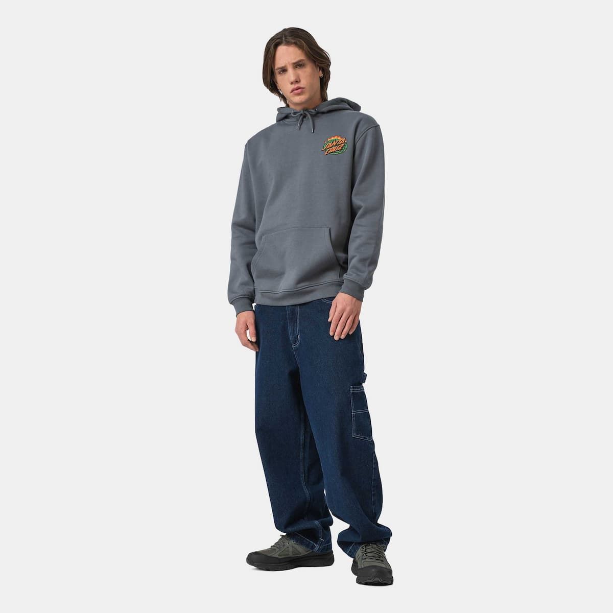La sudadera con capucha para hombre Santa Cruz Kendall End Of The Dot Hood en tono gris tormenta no es solo una prenda cómoda, es un manifiesto visual. Diseñada para quienes respiran skate y cultura callejera, esta hoodie combina funcionalidad con el carácter rompedor de los gráficos Santa Cruz.