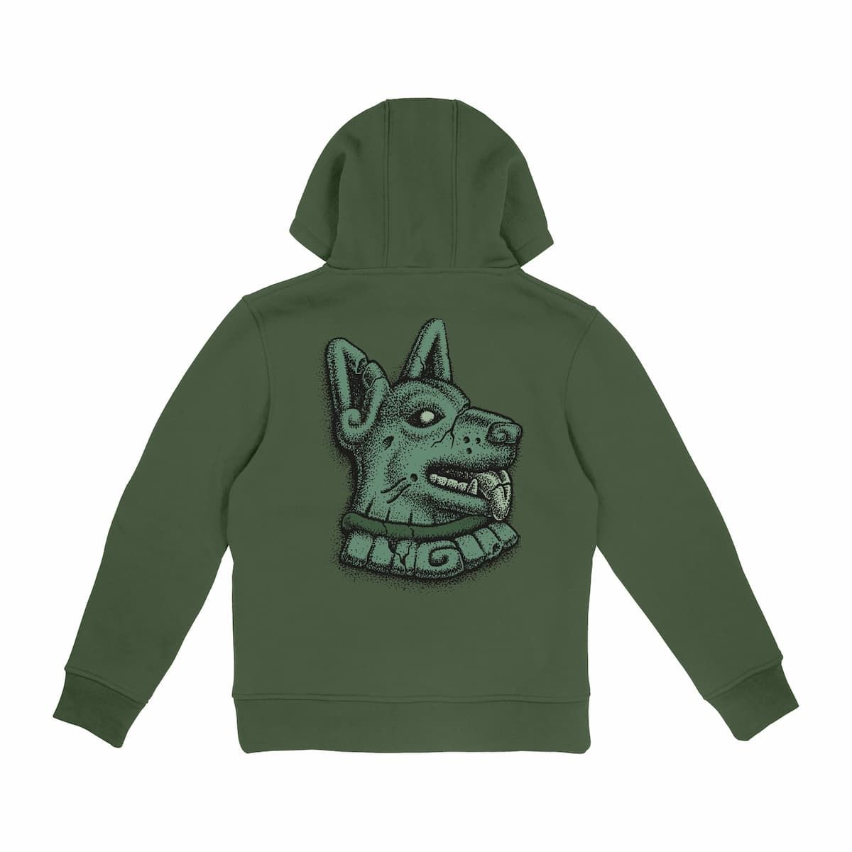En el pecho, el logotipo de Santa Cruz se reinterpreta con un toque gráfico que mezcla lo tribal y lo moderno. La espalda sorprende con un impactante diseño canino de estética ilustrada, que homenajea el universo visual de Winkowski y le da a esta sudadera un toque salvaje y original.