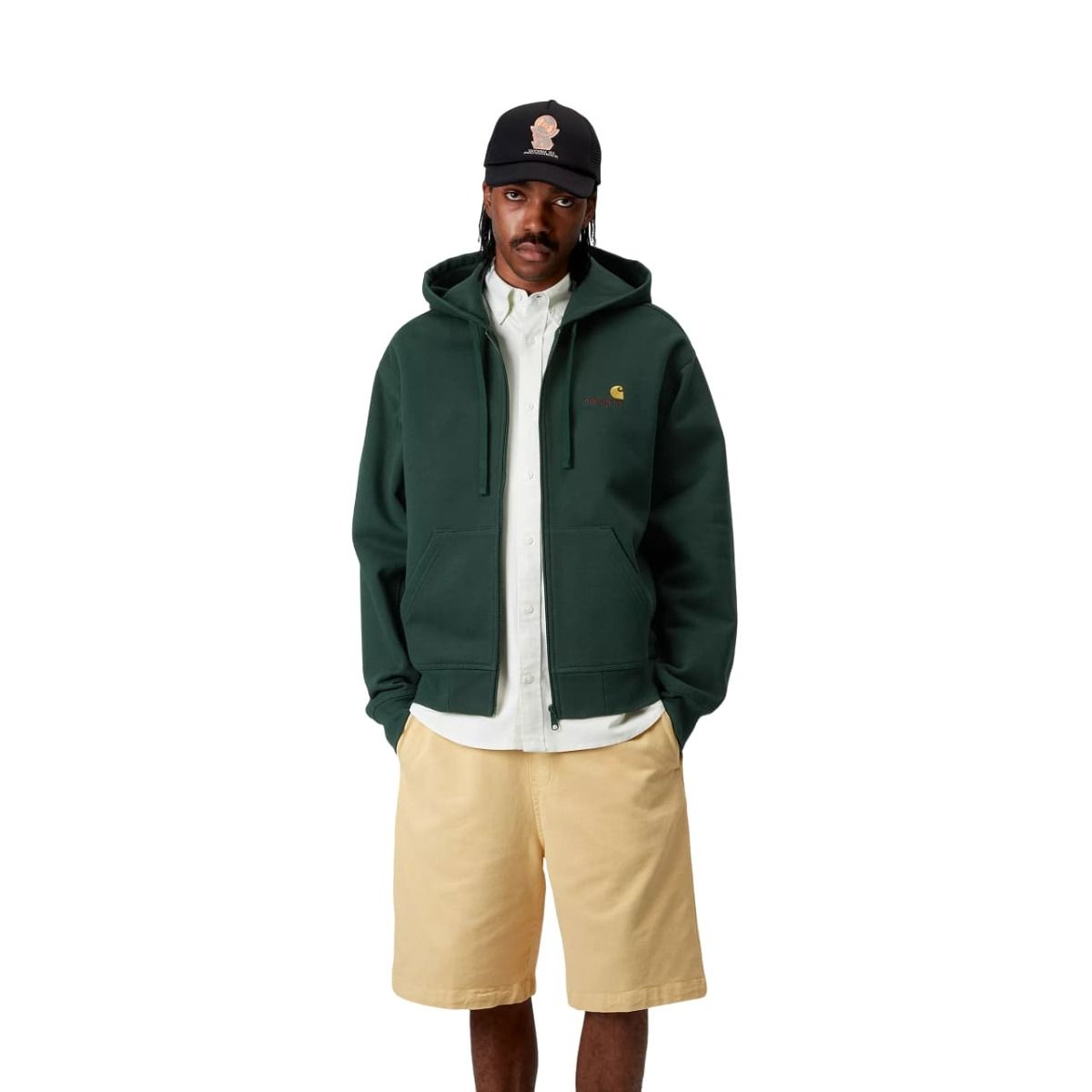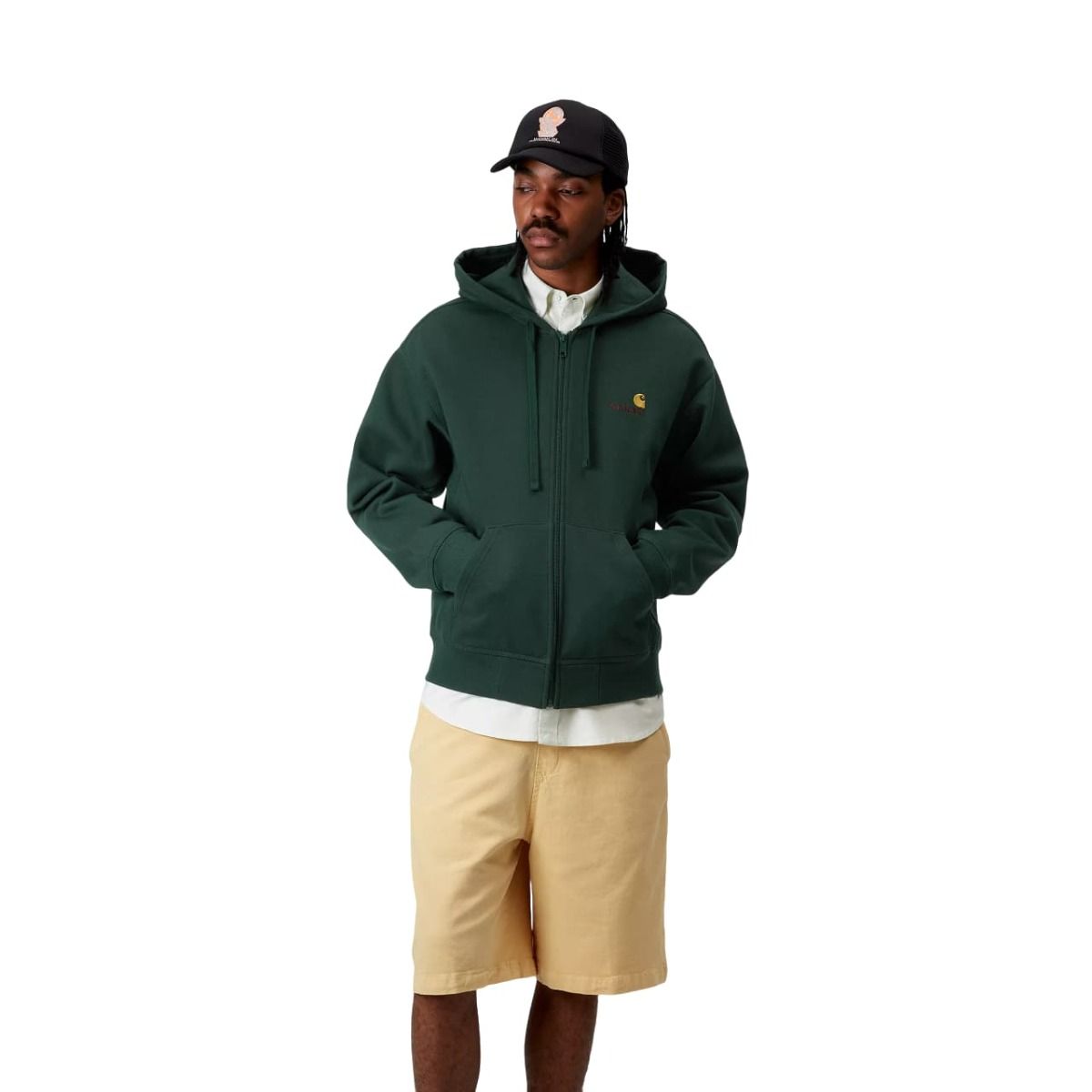 Saca tu lado más urban con la Sudadera con capucha y cremallera Hooded American Script Jacket color Conifer de Carhartt WIP.