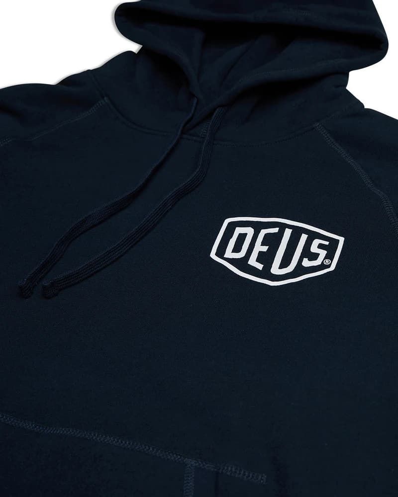 La sudadera con capucha Tokyo Address Azul Marino de Deus Ex Machina es un clásico que no puede faltar en tu colección.