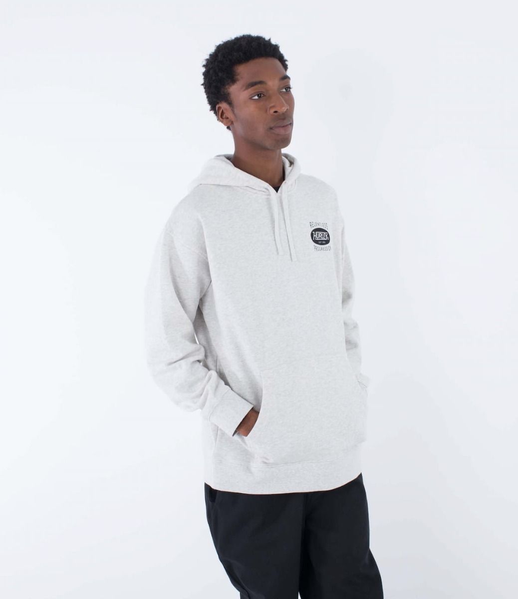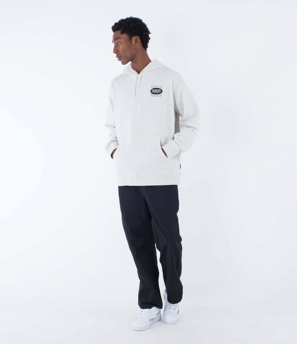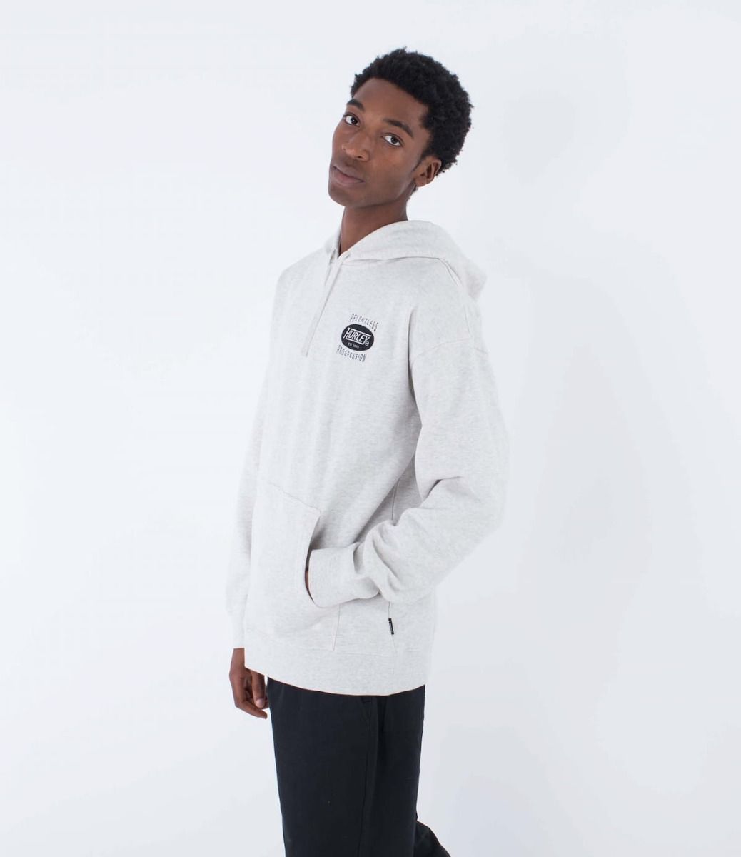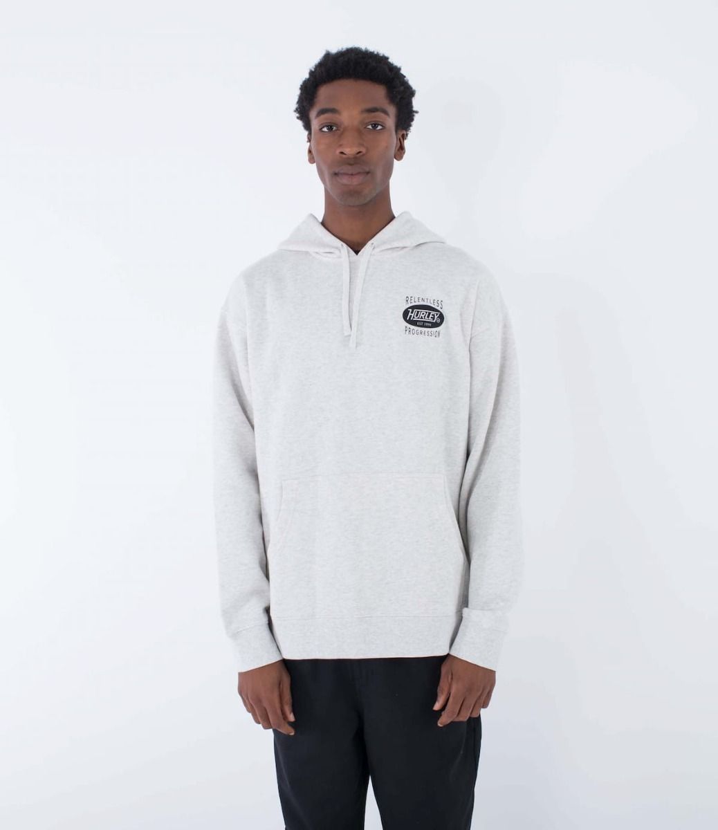 La sudadera con capucha Progress Gris Claro para hombre tiene una etiqueta de Hurley One & Only tejida en el lateral.