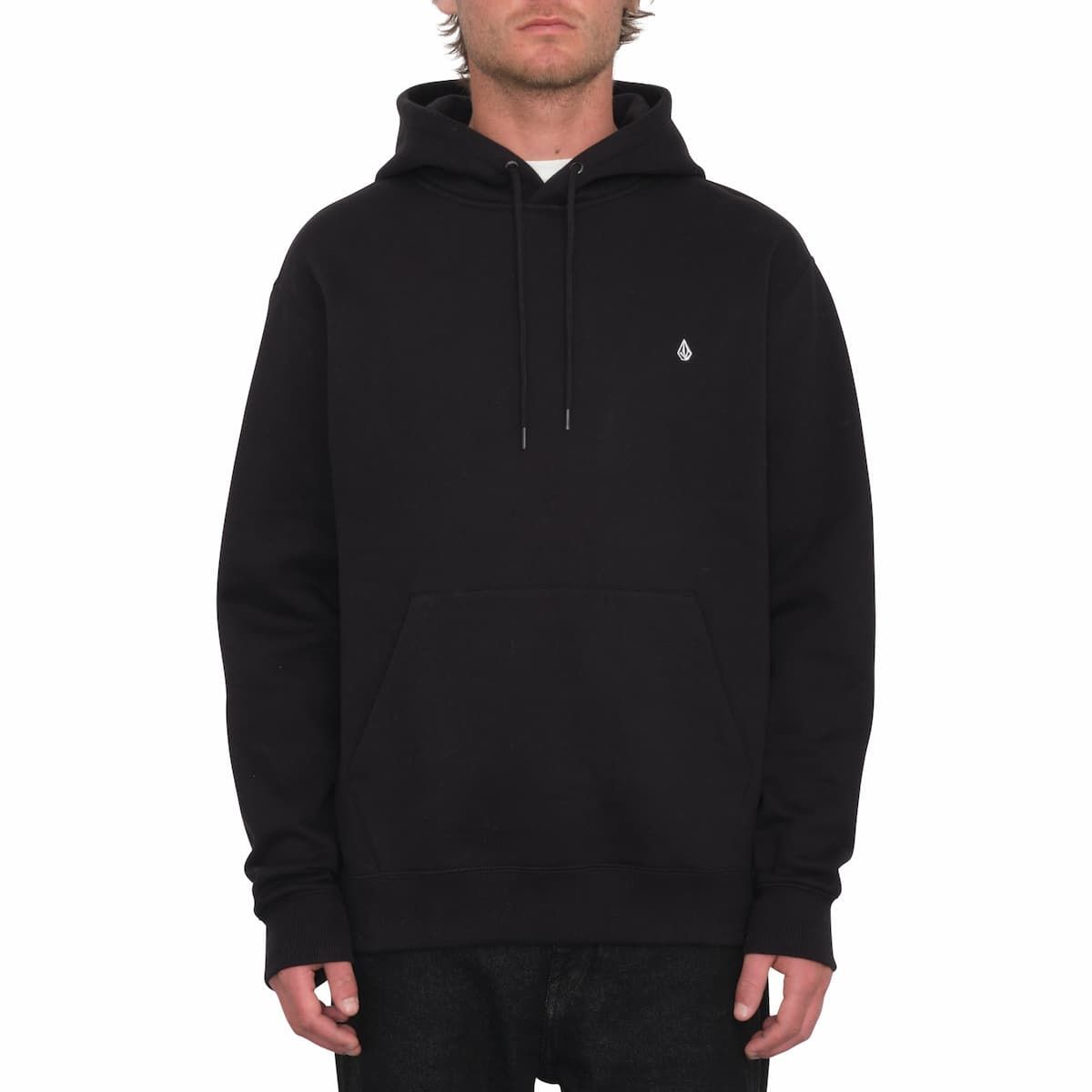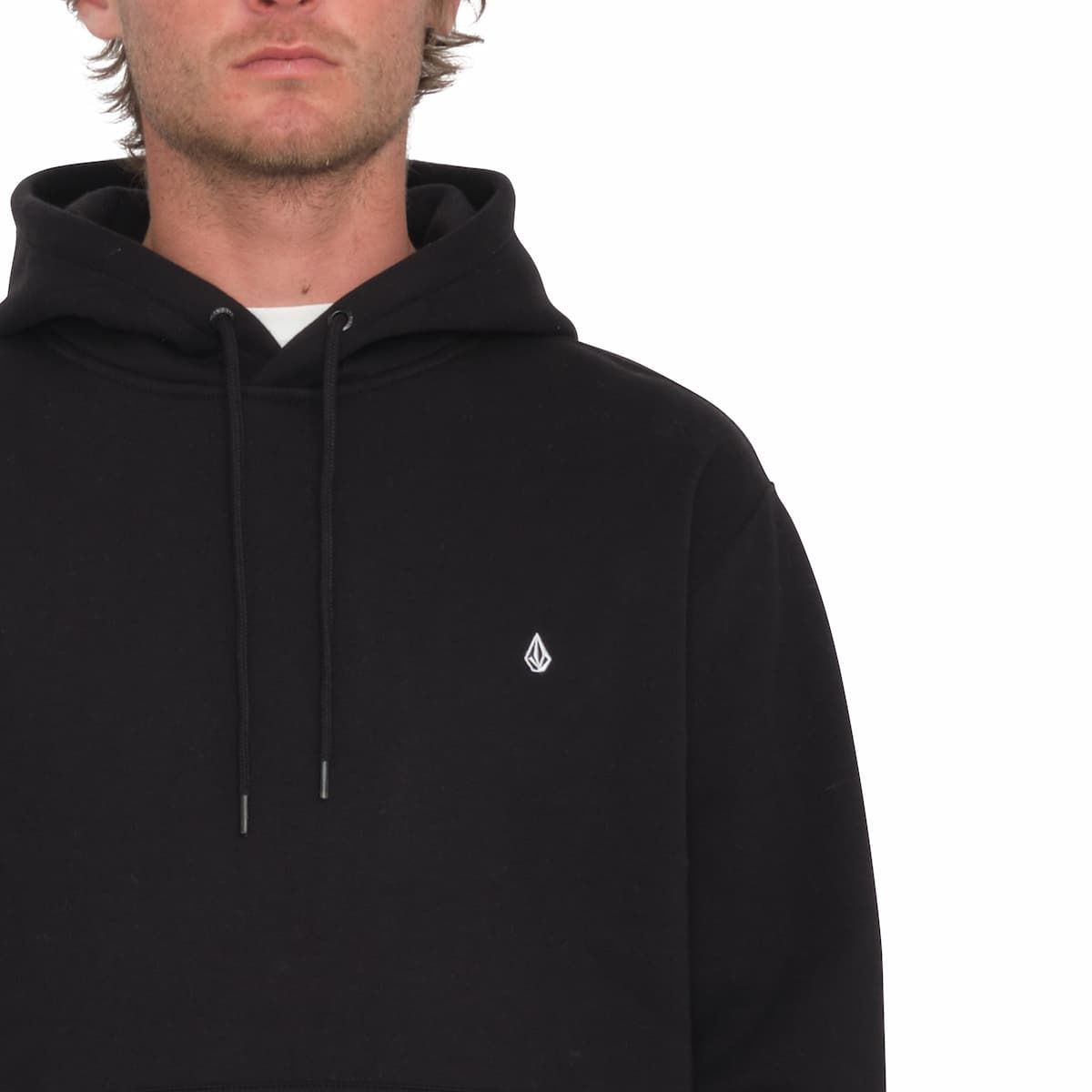 La sudadera con capucha para hombre Single Stone PO en negro (Black) de Volcom confeccionada con tejido afelpado suave en mezcla de 80% algodón, 15% poliéster reciclado Repreve™ y 5% poliéster (330g).