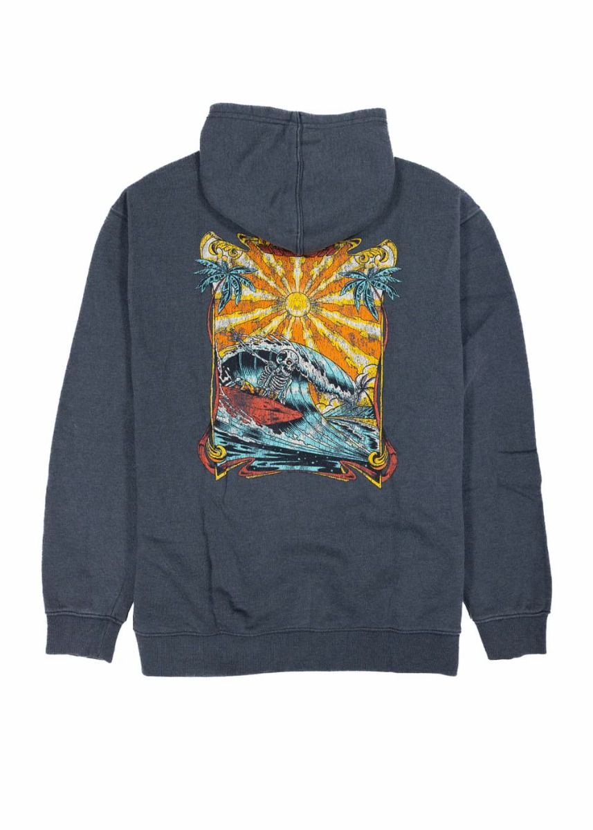 Con un lavado ácido sobre teñido en prenda, esta sudadera presenta un acabado envejecido único que refuerza su carácter. La parte trasera luce un impactante gráfico serigrafiado con calaveras, olas y palmeras bajo un sol radiante —una escena de culto para los que saben lo que significa vivir al límite. El diseño se completa con el logo bordado en el pecho y un interior cepillado de tacto ultra suave.