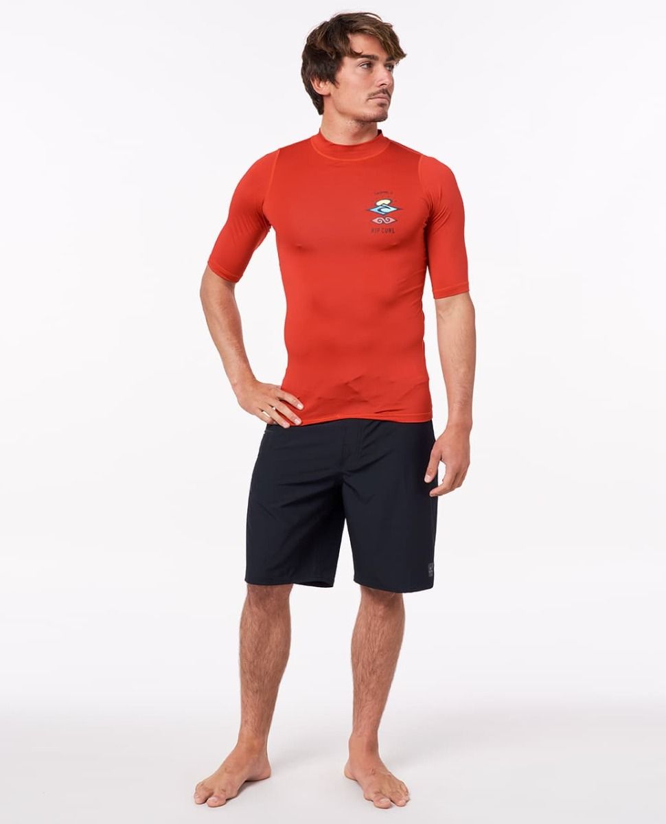 Licra de manga corta con protección solar UPF 50+ Rip Curl Icons Perf SSL UV en color rojo para hombre
