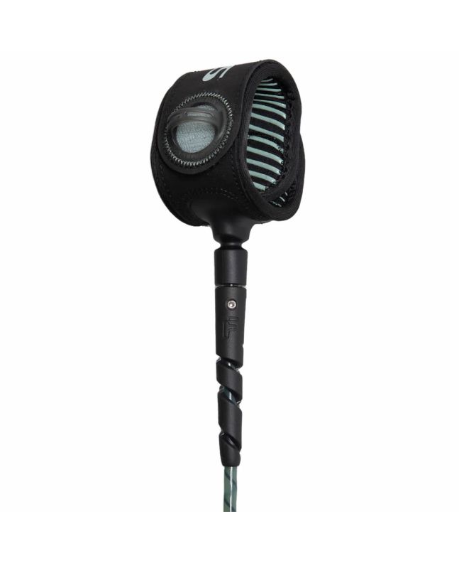 Este leash de surf cuenta con un fuerte cable de 6,5 mm de diámetro con construcción en hélice interna que se endereza bajo carga para absorber los impactos y aumentar la resistencia, junto con una superficie texturizada que crea un flujo de agua más suave para reducir la fricción.