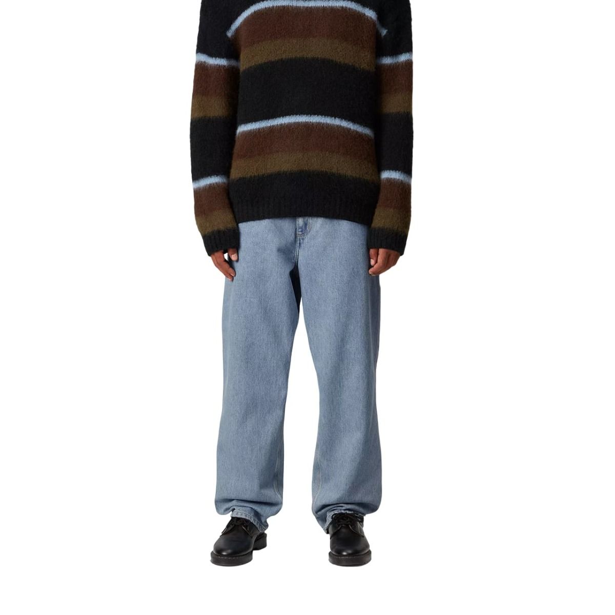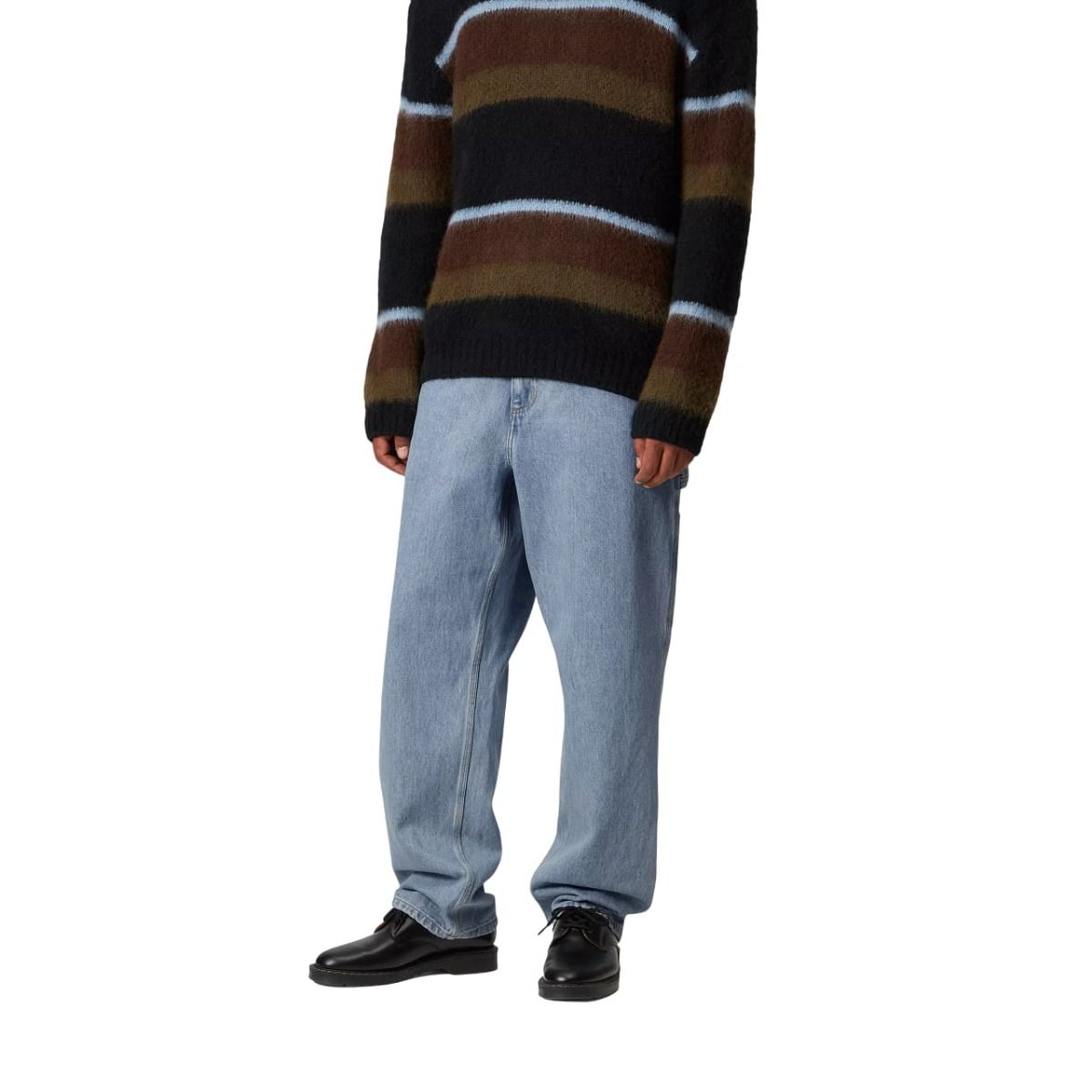 Vaquero Carhartt WIP Single Knee con corte relajado y talle regular. Denim resistente azul de algodón con lavado a la piedra blanqueado.