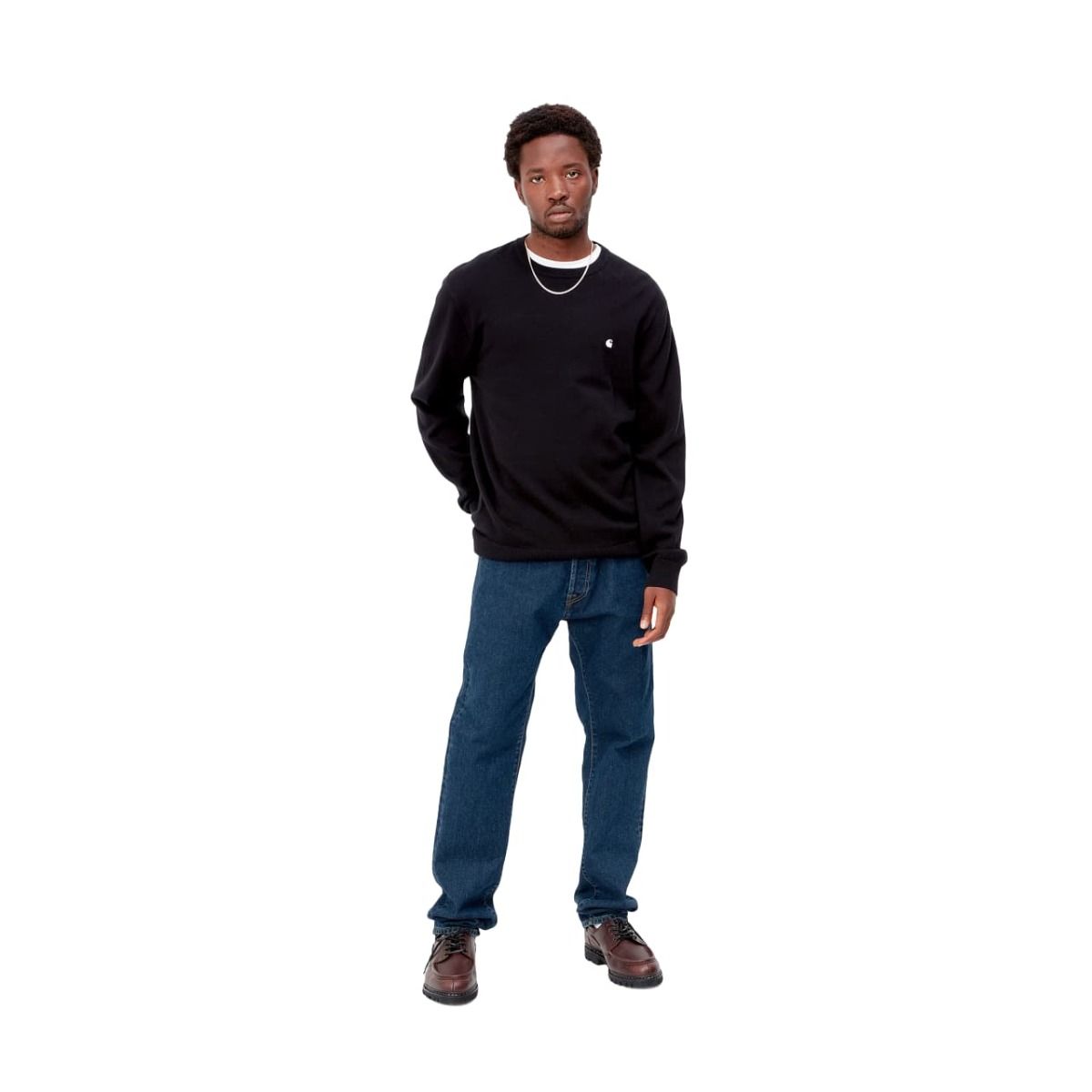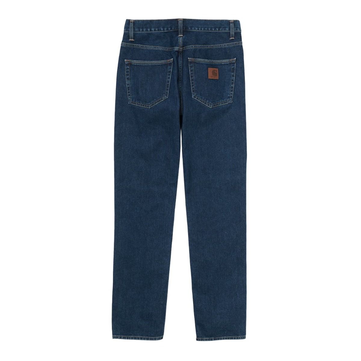 Estos jeans de tiro bajo y corte regular ajustado cuentan con denim lavado a la piedra para mayor comodidad, bragueta de botón, canesú trasero, remates metálicos y costuras reforzadas en zonas de tensión, bolsillos delanteros, bolsillo para monedas, bolsillos posteriores y una etiqueta con el logo de Carhartt cosida en el bolsillo posterior derecho.