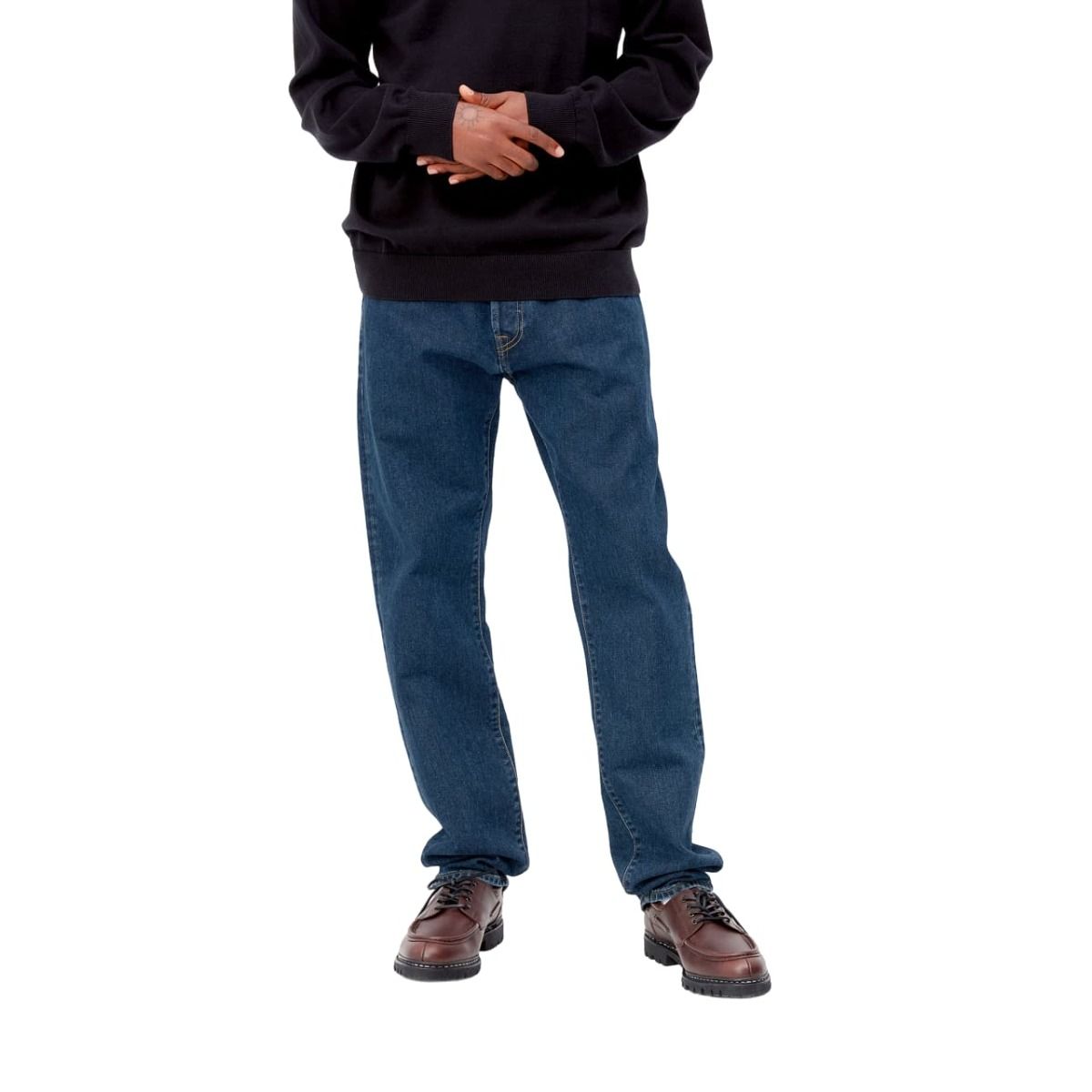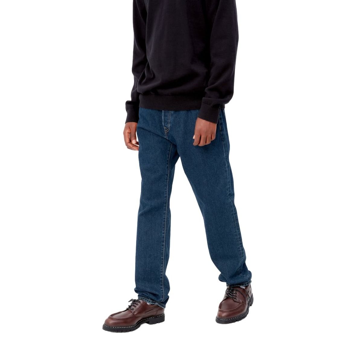 Los pantalones vaqueros para hombre Klondike Pant en tono azul lavado a la piedra (Blue-Stone Washed) de Carhartt WIP están confeccionados con un 100% de denim azul de algodón orgánico de 13,5 onzas (tejido "Maitland").
