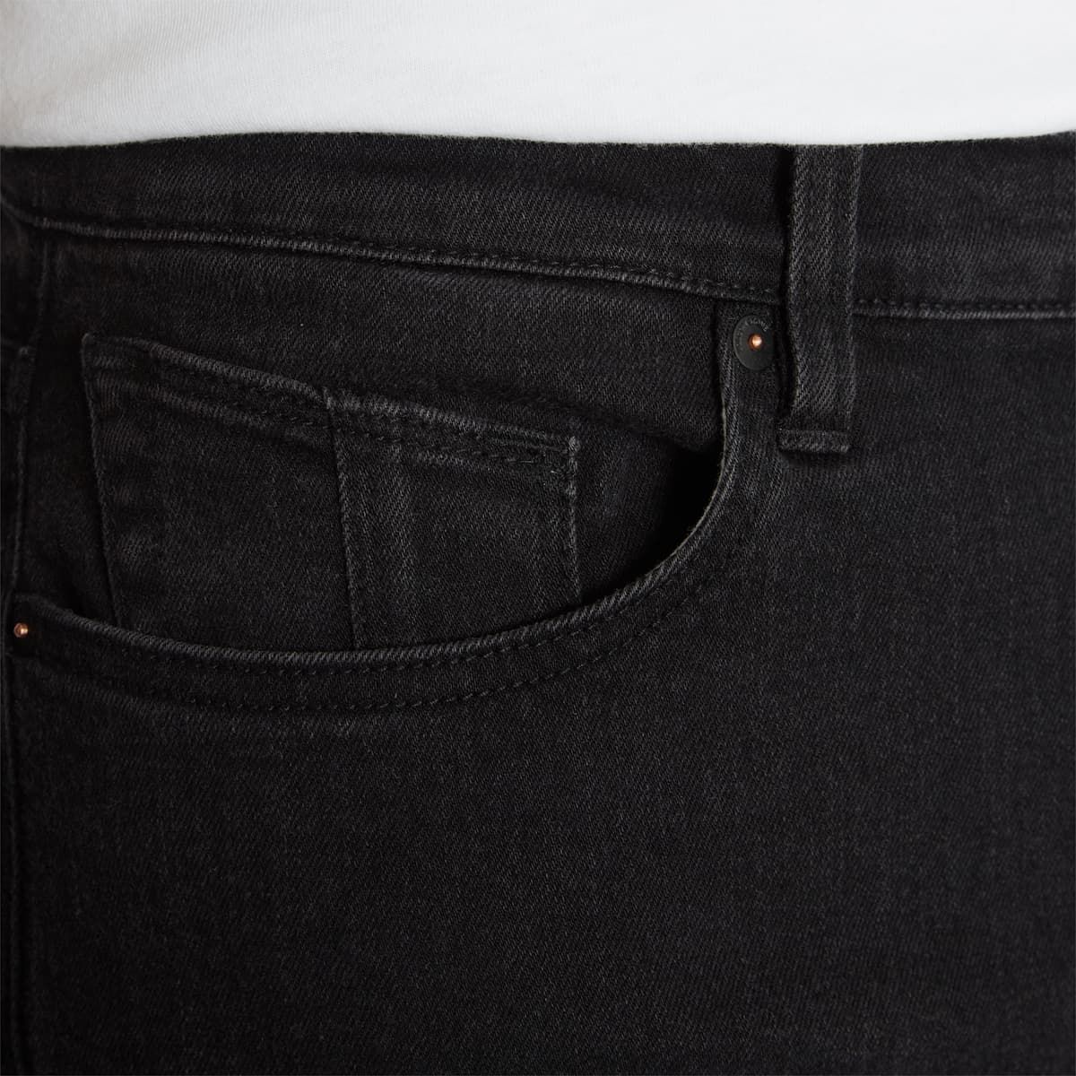 Los pantalones vaqueros Vorta Denim Negros han sido sometidos a procesos de desencolado y lavado enzimático sin suavizantes mediante técnicas de lavado que limitan el consumo de agua (Volcom Water Aware).