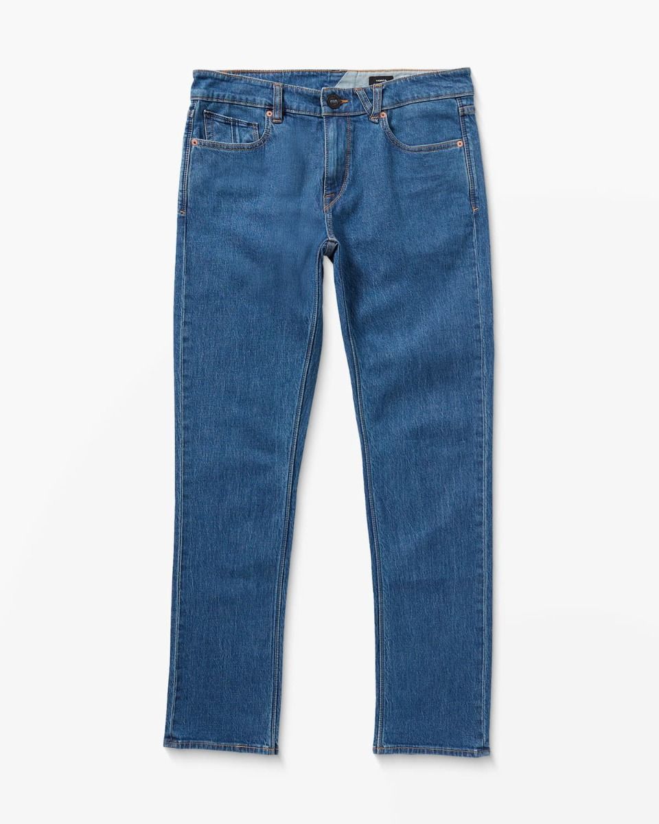 Vaquero Volcom Vorta Denim Bold Blue para hombre, corte slim fit con pierna recta y algodón reciclado.