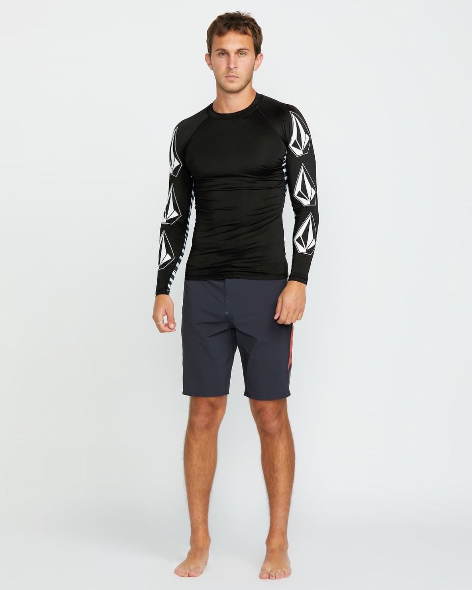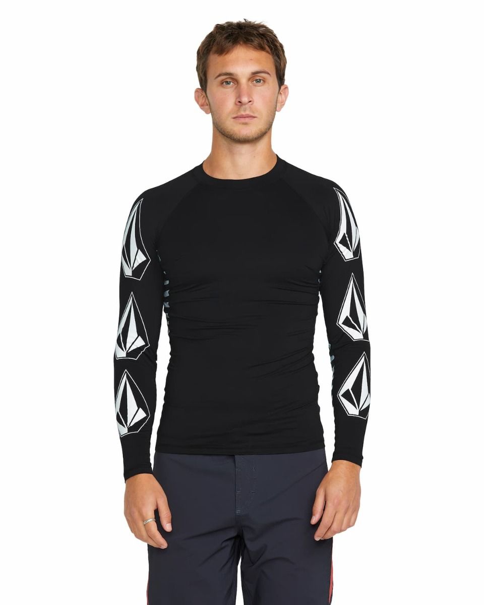 La camiseta protectora de manga larga para hombre Surf Vitals J Robinson Long Sleeve Rashguard UV 50+ en tono negro (Black) de Volcom estĆ” confeccionada con tejido de 84% poliĆ©ster reciclado Ā y 16% elastano.Ā
