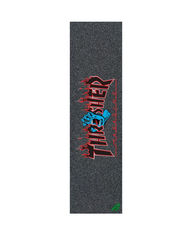 La lija de skate Screaming Flame Logo 11" x 33" de Mob Grip presenta un gráfico especial que combina el logo de la Screaming Hand de Santa Cruz Skateboards y el logo de Thrasher Magazine .