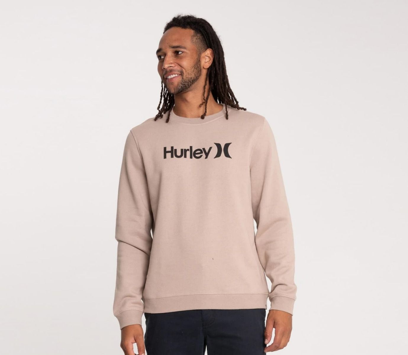La sudadera sin capucha para hombre One and Only Seasonal Crew Fleece en beige (Simply Taupe) de Hurley está fabricada con 80% algodón y 20% poliéster (300gsm).