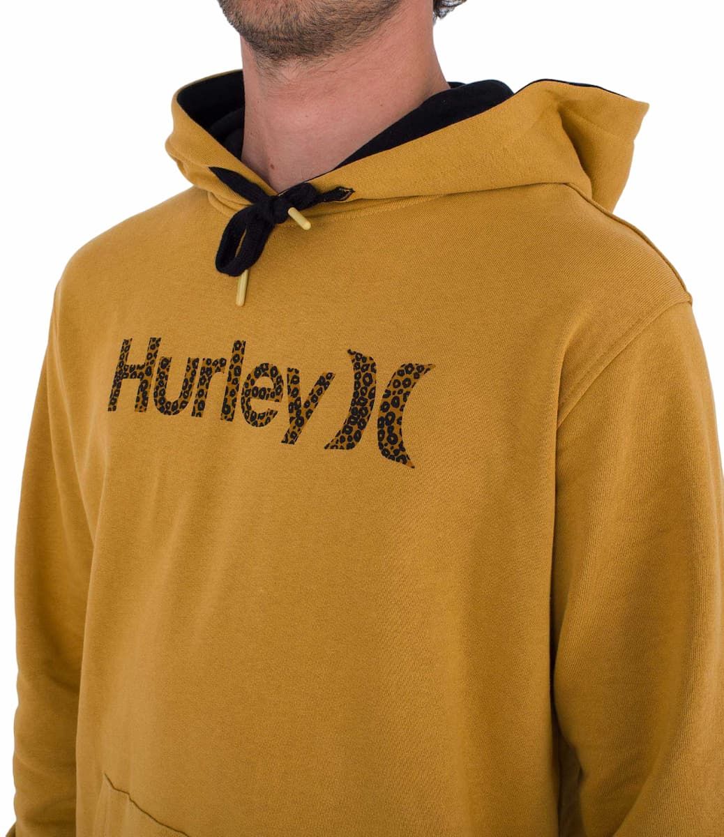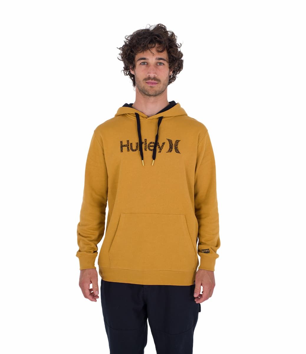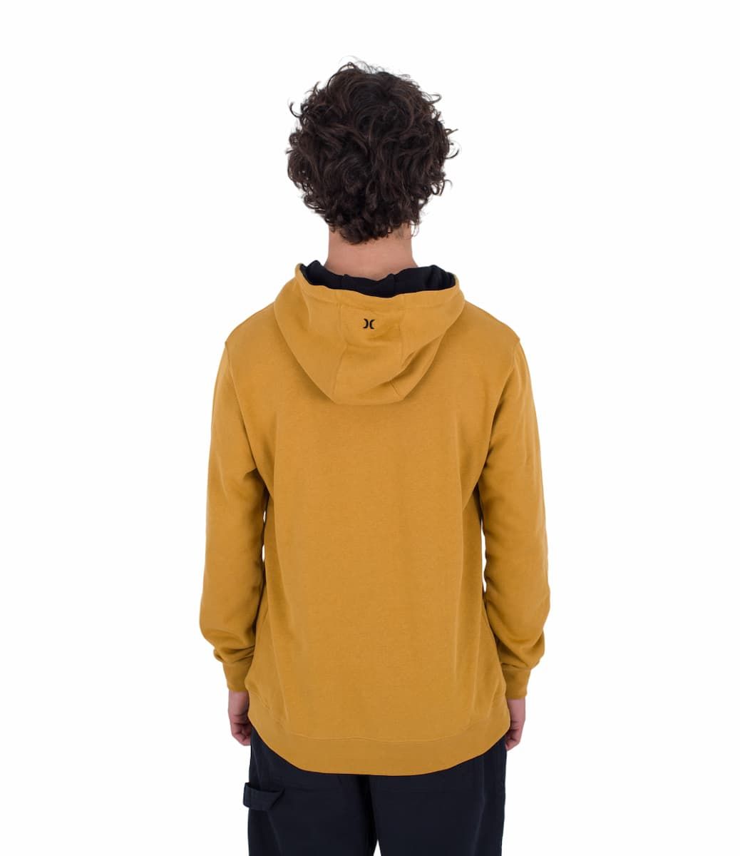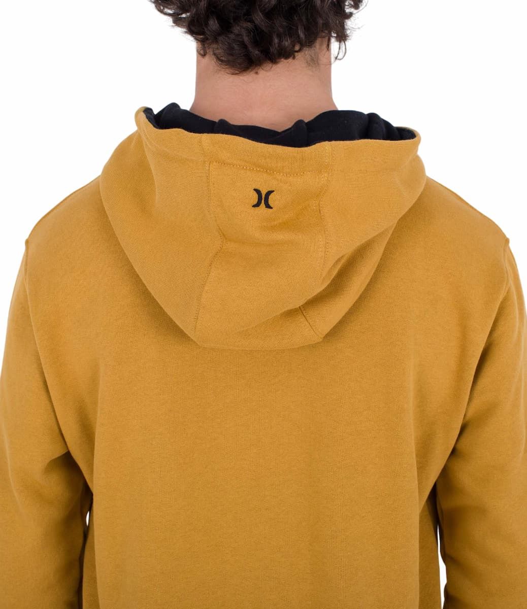 La sudadera con capucha Toledo Basic Cheddar para hombre tiene una etiqueta de Hurley One & Only tejida en el dobladillo.