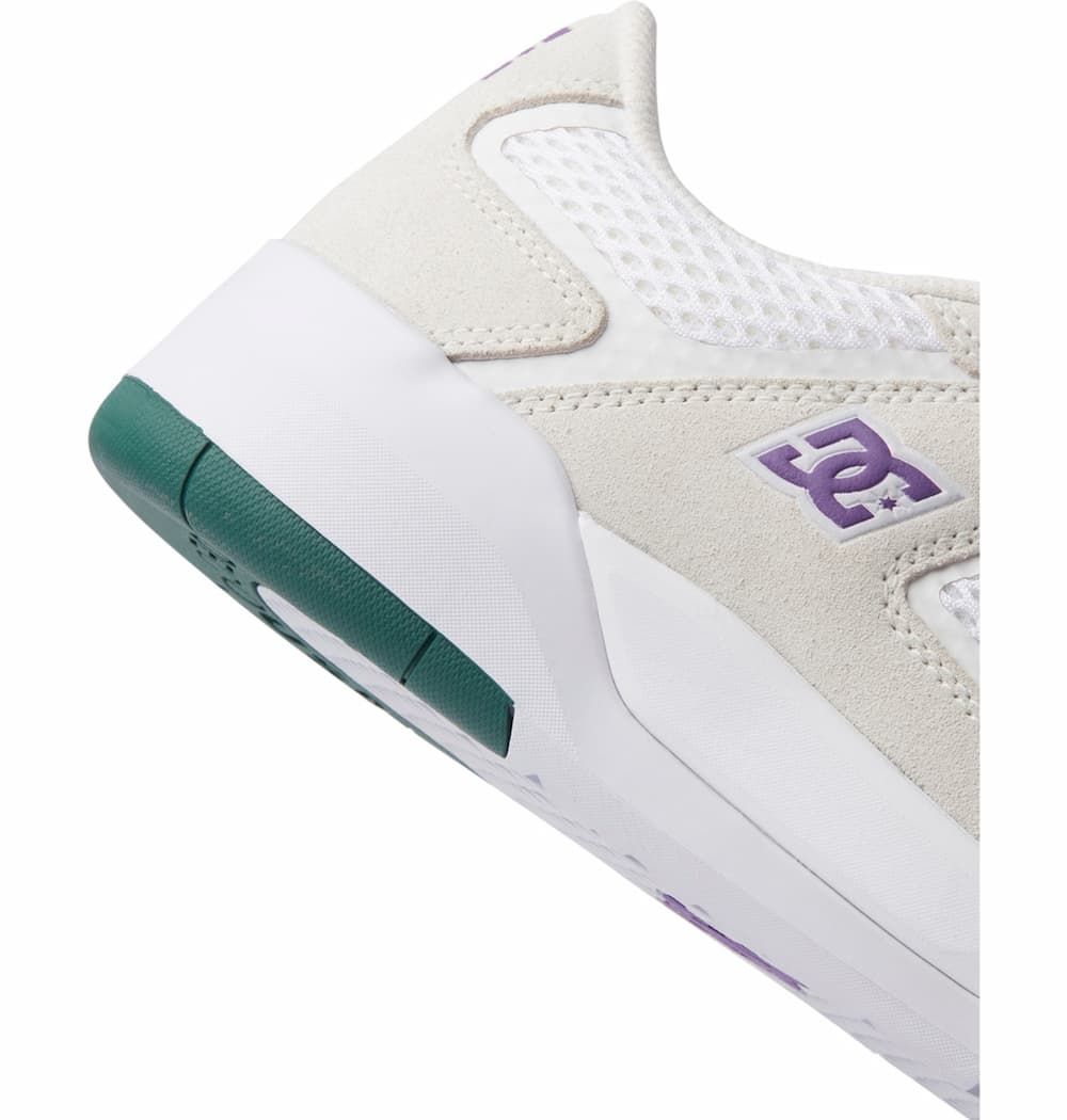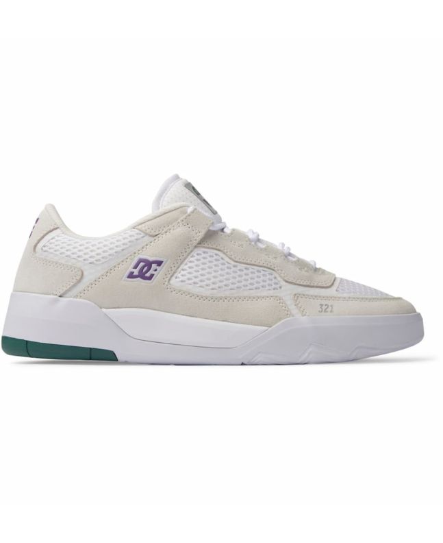 Las zapatillas de skate para hombre Metric S x Ish Cepeda en tono blanco y púrpura (White-Purple) de DC Shoes están confeccionadas con cuero, textil y goma.