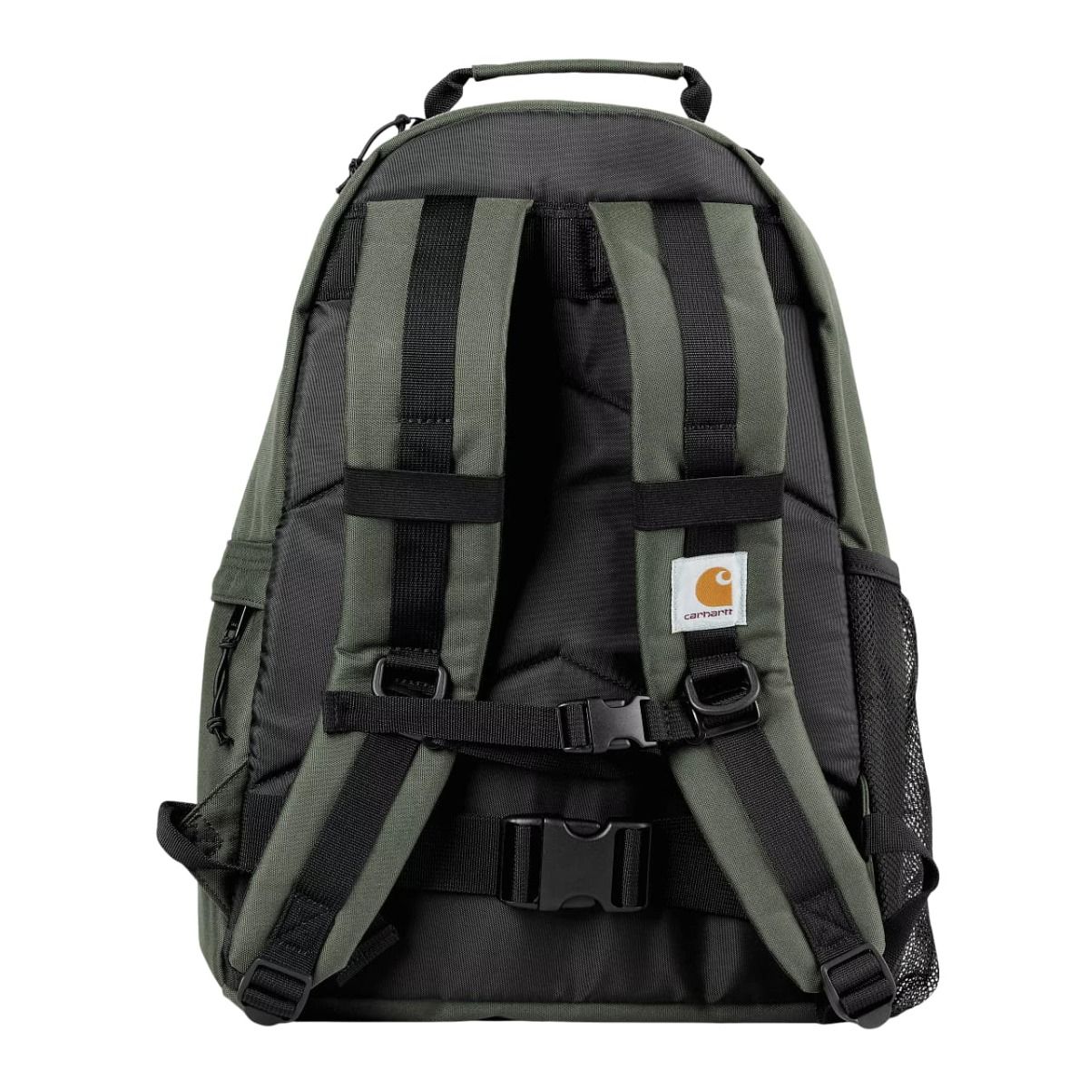 Mochila técnica Carhartt WIP de 24,8L en verde Opuntia con correas para skate, espalda acolchada y tejido repelente al agua. Resistencia urbana sin concesiones.