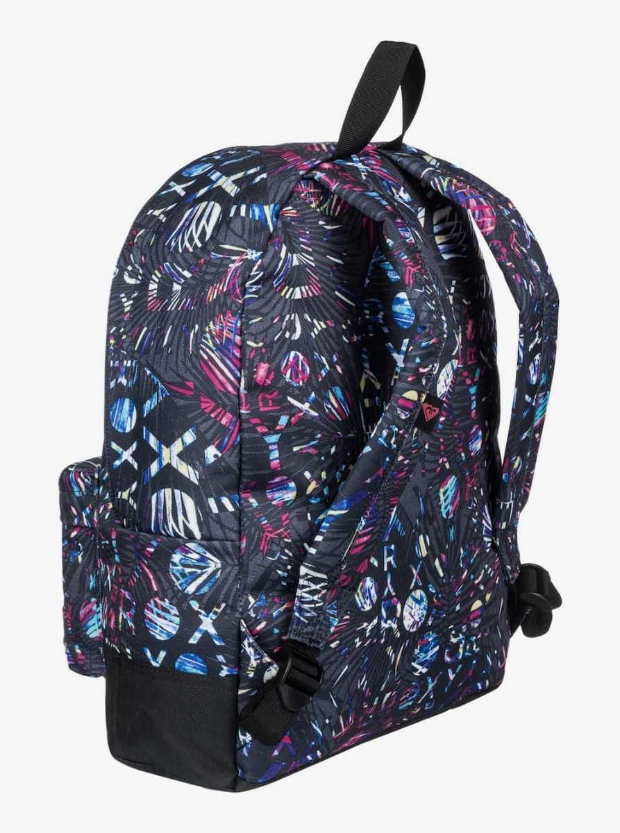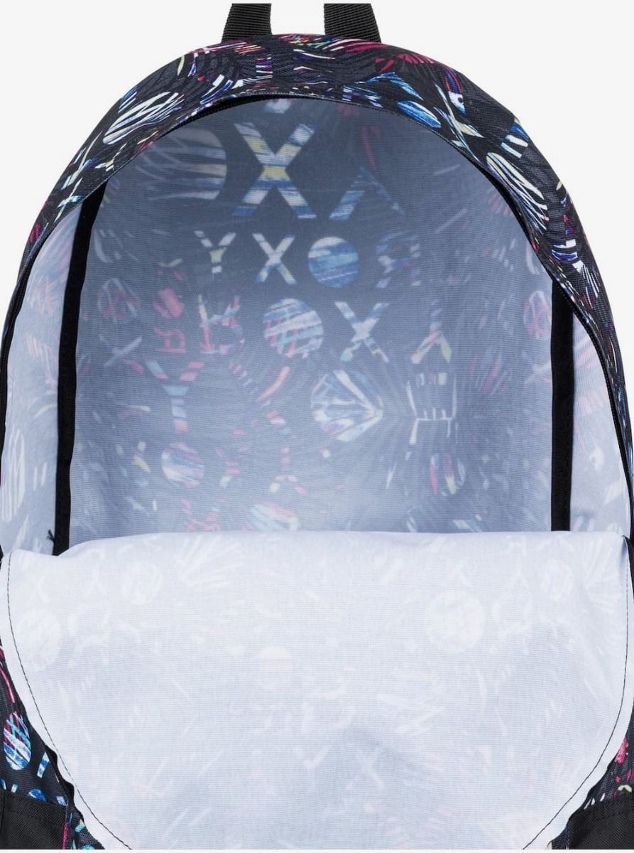 Esta mochila cuenta con un compartimento principal con cierre de cremallera, bolsillo frontal con cremallera, parte inferior lisa, correas de hombro ajustables y acolchadas, asa superior, *estampado integral y un parche de algodón con el logo de Roxy tejido en la parte delantera.