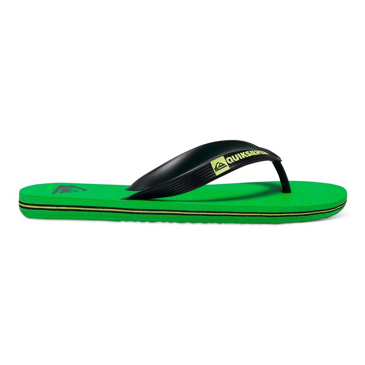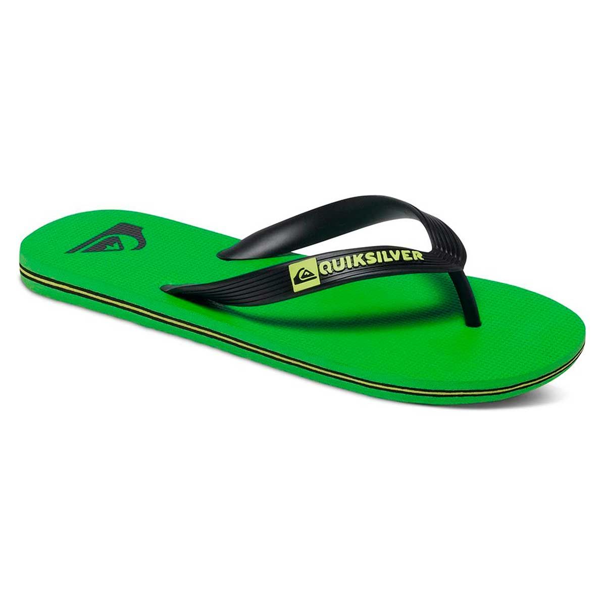 Las chanclas Molokai verdes para chico tienen el logo de Quiksilver moldeado en la tira del empeine.
