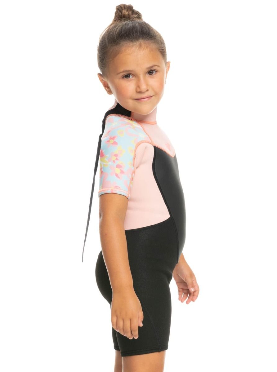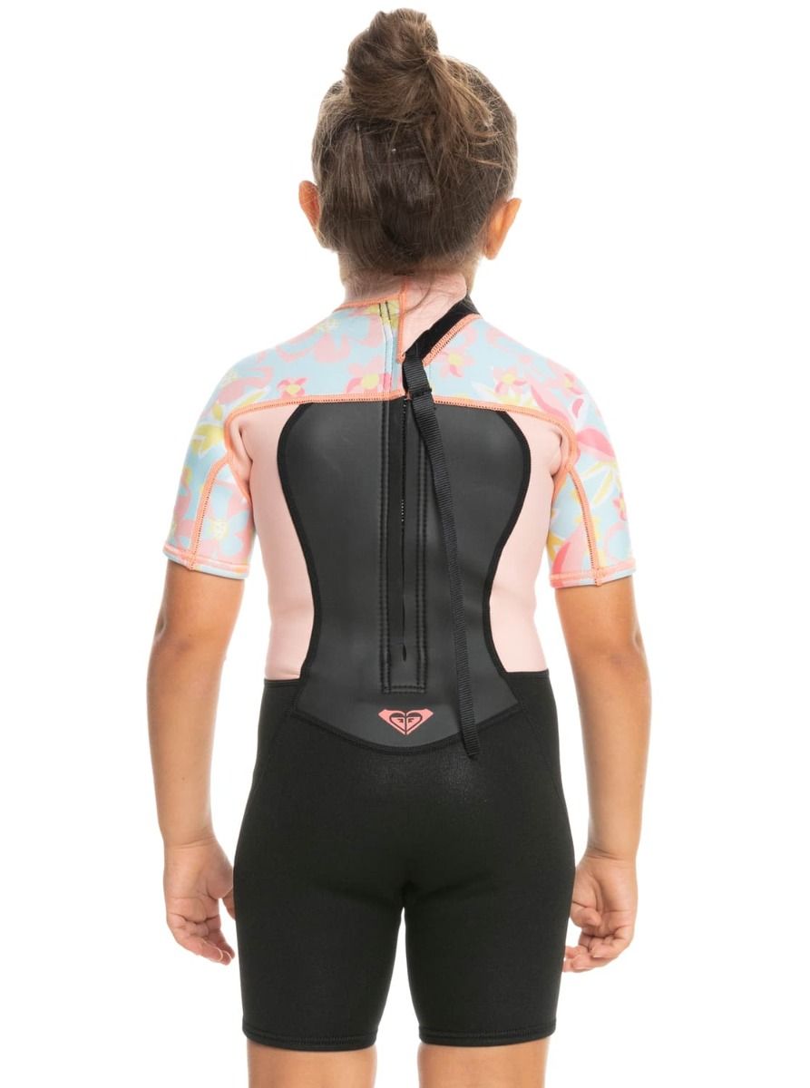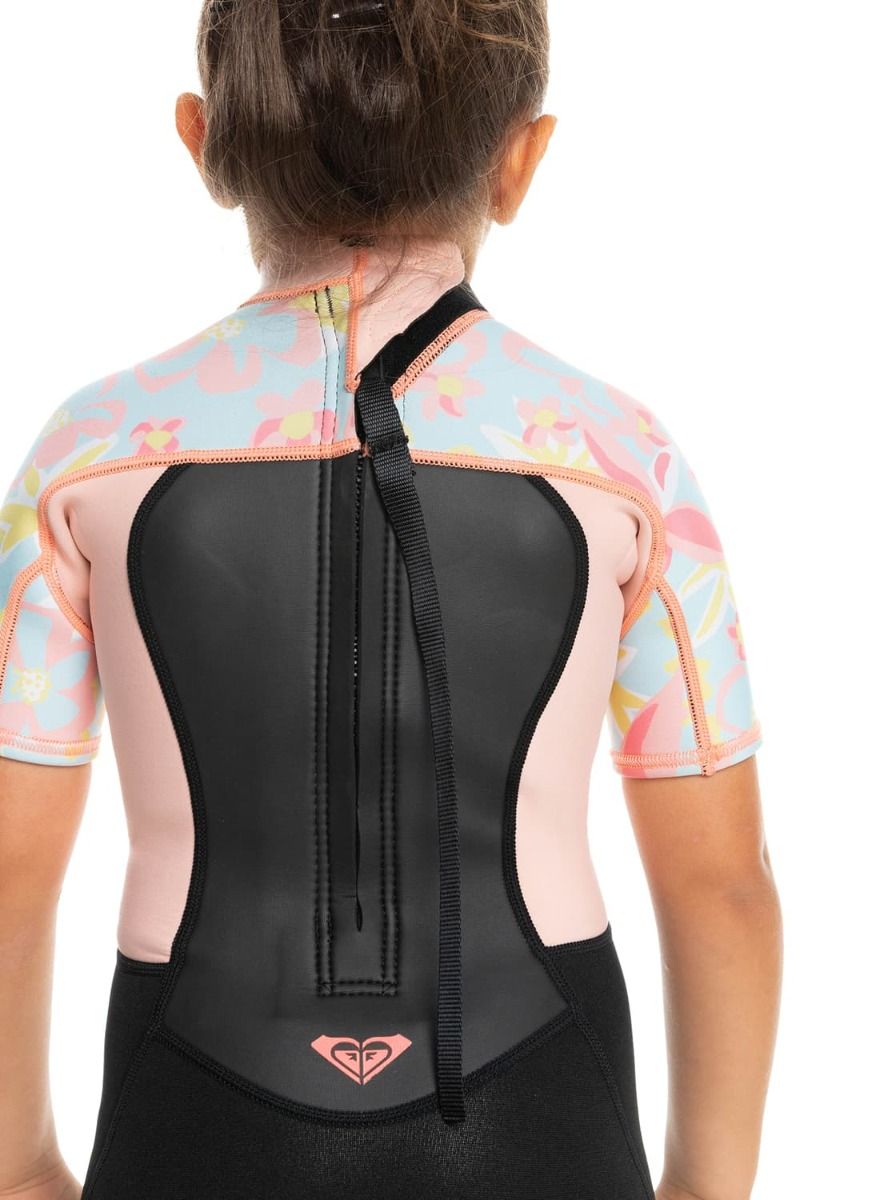 Traje de Surf de primavera con manga corta y cremallera en la espalda Roxy Girl Prologue Tiny 2/2mm en color rosa floral para niña (2-7 años)