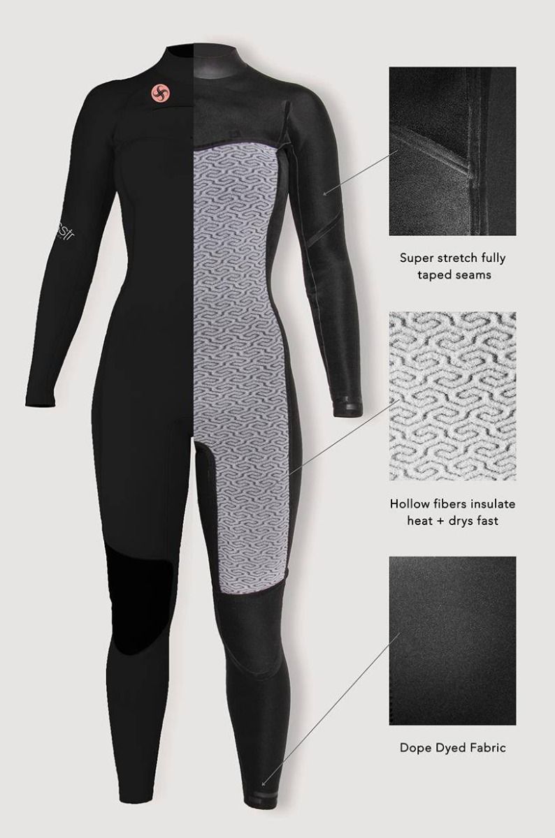 Tiene un sistema de entrada con cremallera en el pecho, con un volumen mínimo con un diseño contorneado impermeable, costuras de triple encolado y doble costura ciega, cinta Neo 2.0 superelástica de Sisstrevolution que permite el máximo sellado de las costuras, a la vez que ofrece una elasticidad y una comodidad sin límites, rodilleras Supratex resistentes a la abrasión para mayor flexibilidad y resistencia, Glideskin en el cuello que se sella a la piel para evitar la entrada de agua cordón de seguridad de fácil acceso.