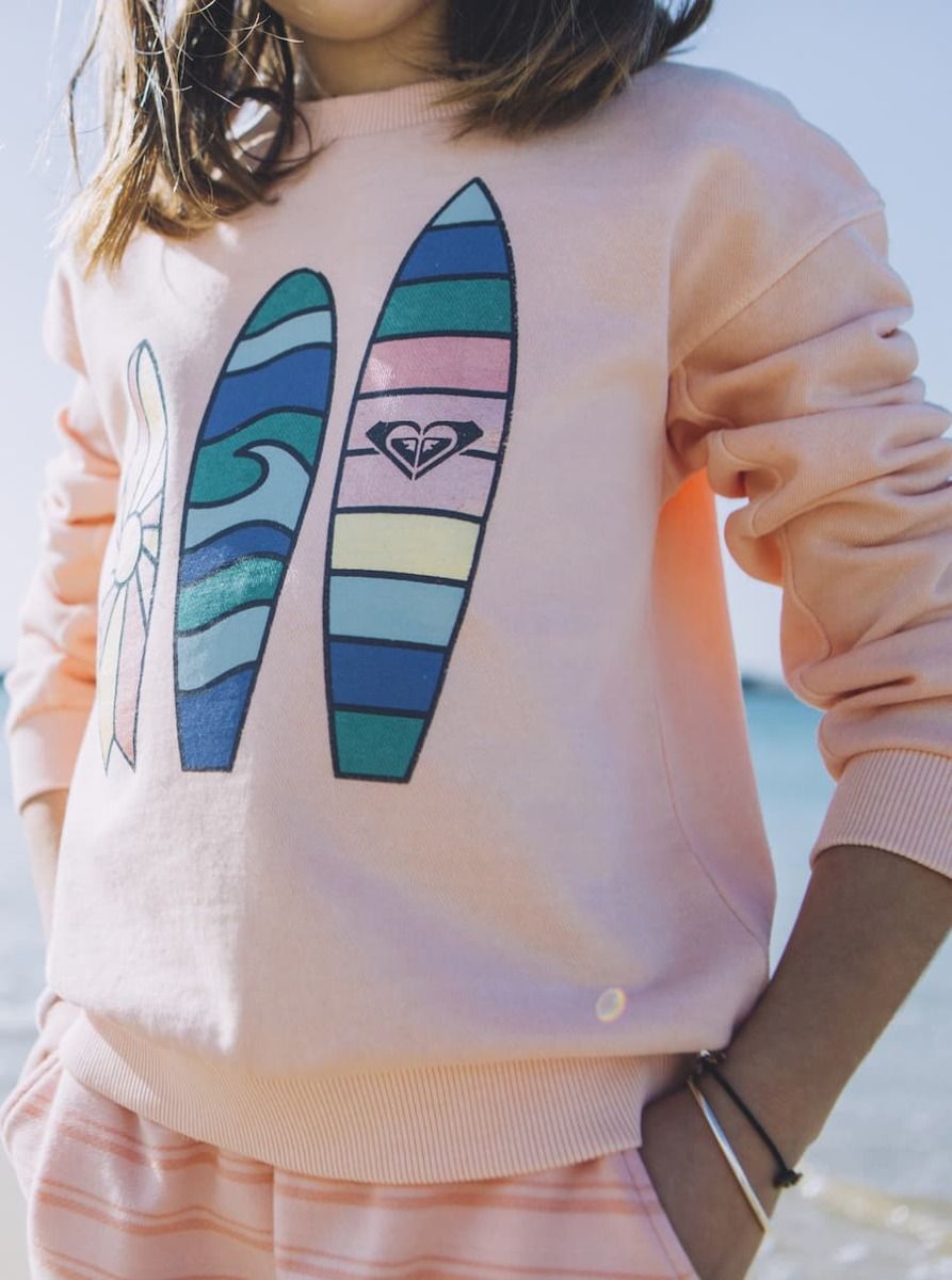 Este crew de ajuste cómodo y casual cuenta con cuello redondo, puños, cuello y cintura acanalados, sisas bajas, tejido sometido a lavado enzimático y serigrafiado surfero Roxy en la parte delantera.