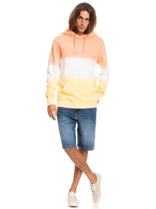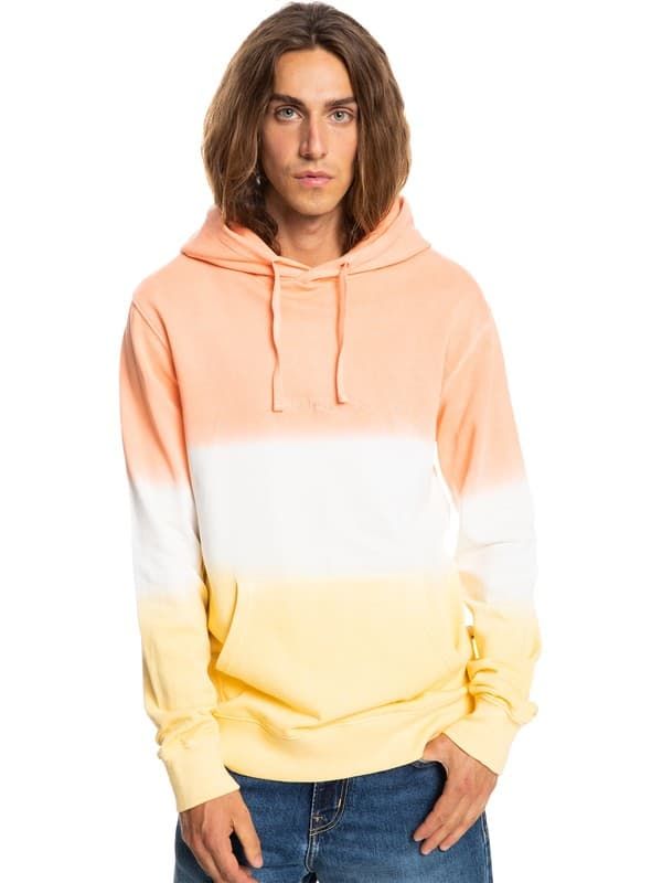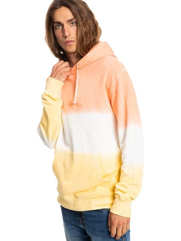 La sudadera con capucha para hombre Ombre Dye rosa de Quiksilver ha sido confeccionada con 100% algodón orgánico sin cepillar (280g/m2) y tratamiento Tie-Dye natural.