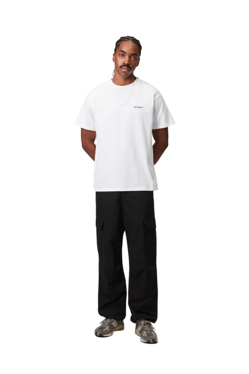 Sus múltiples bolsillos laterales con solapa rinden homenaje a la inspiración militar del diseño. Proporcionan espacio real y accesible para llevar lo indispensable sin renunciar a un look actual. La etiqueta cuadrada clásica de Carhartt WIP añade el toque final de autenticidad en la pierna izquierda.