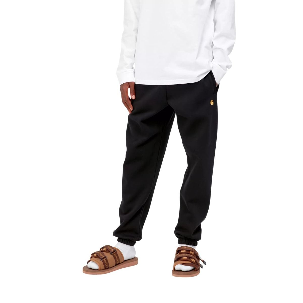 Pantalón de chándal Carhartt WIP Chase Sweat en color negro con el logo dorado para hombre