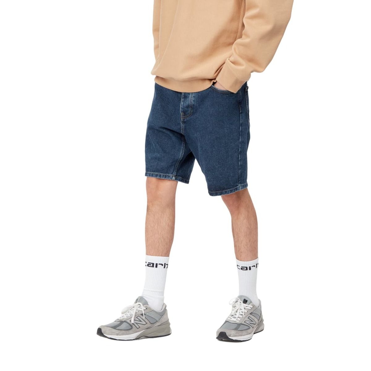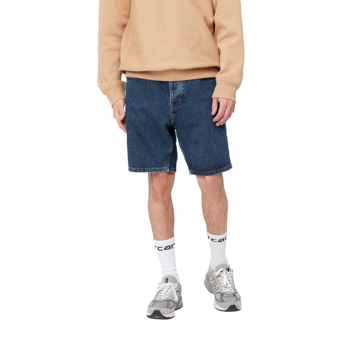 El pantalón vaquero corto Newel Short Azul (Stone Washed) para hombre de Carhartt Work In Progress te ofrece la calidad y durabilidad que necesitas para tus aventuras urbanas.