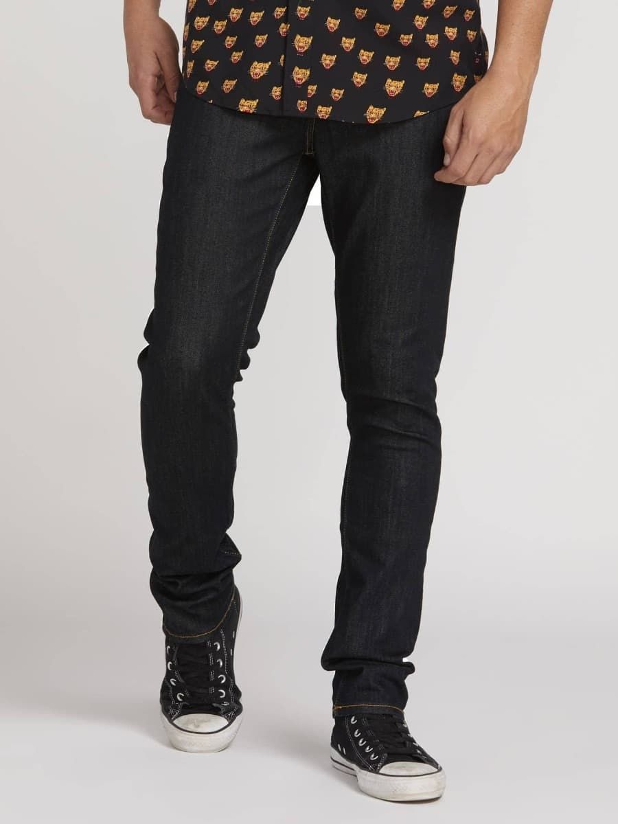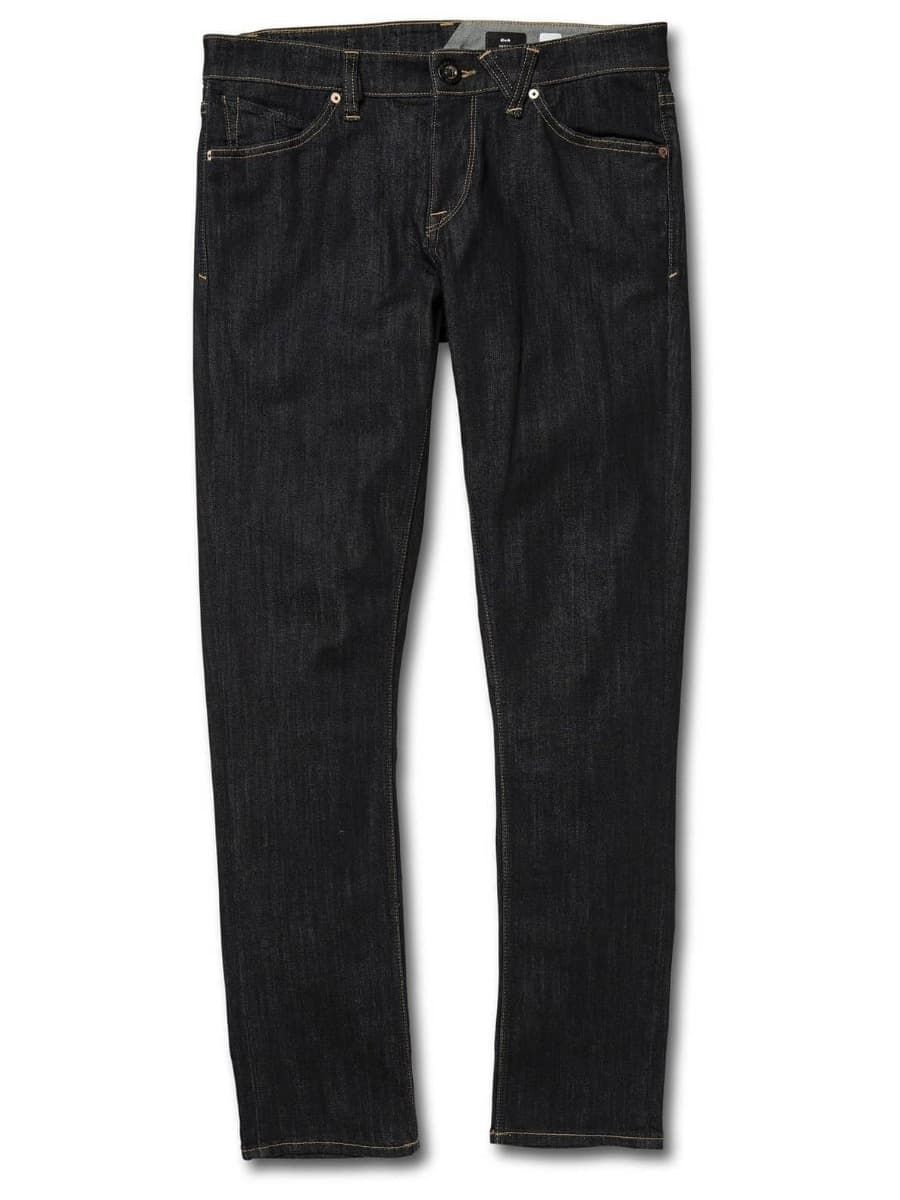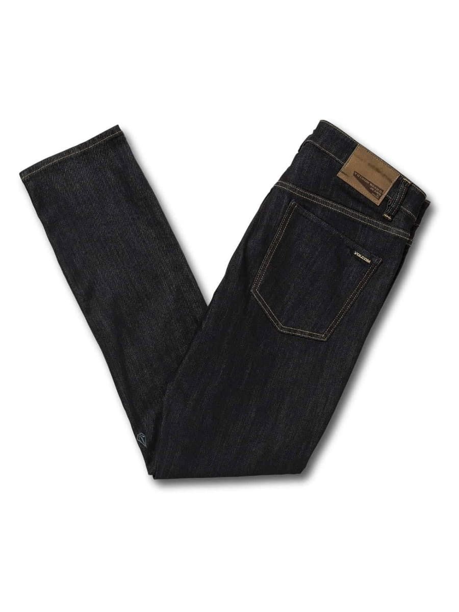Estos pantalones vaqueros elásticos índigo han sido confeccionados con tinte azul marino y lavado a la piedra para darle una apariencia vintage, y todos los detalles característicos de Volcom Brand Jeans.
