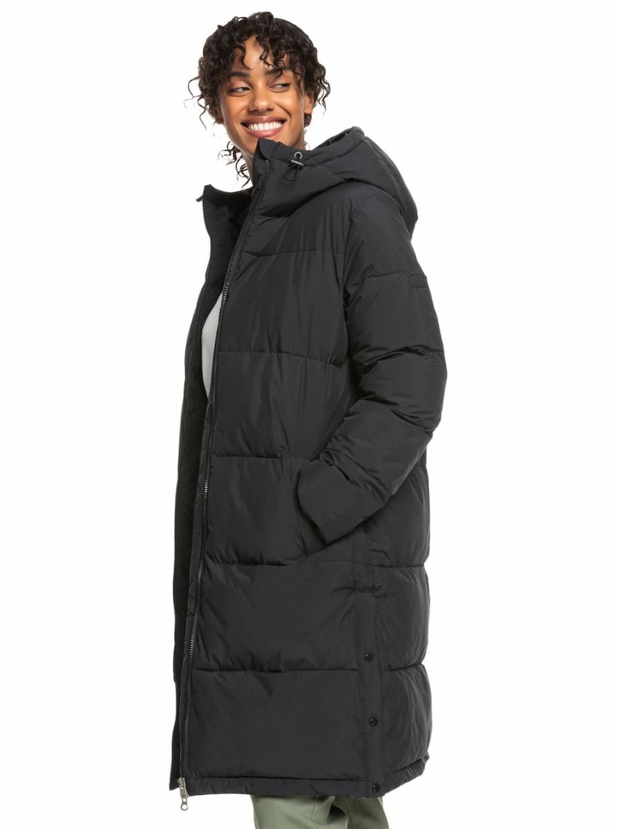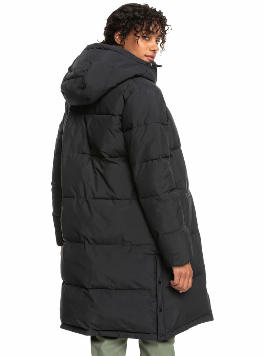 Este invierno protégete del frío y la lluvia con la Chaqueta larga acolchada con capucha Test Of Time Antracita para mujer de Roxy.