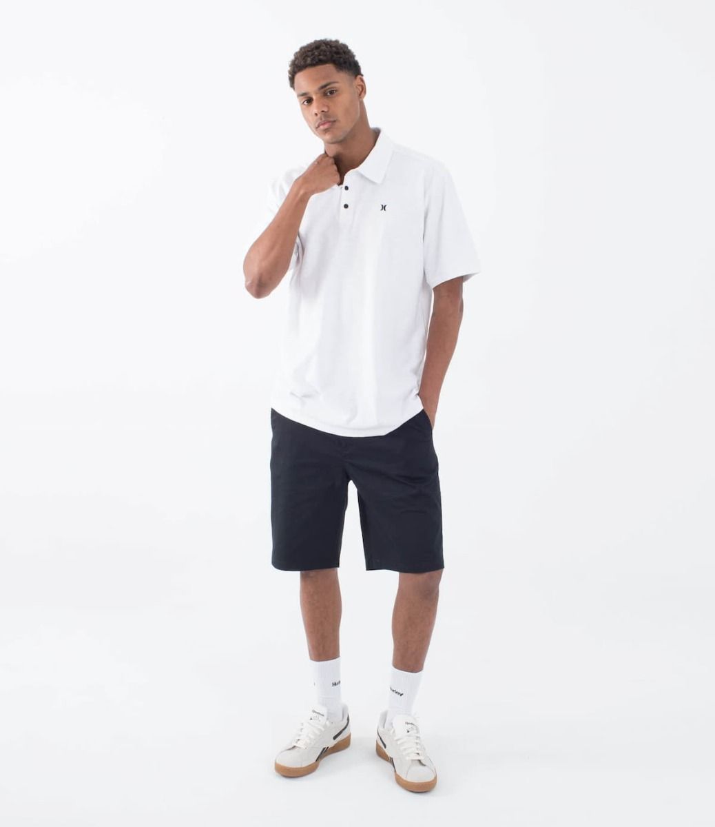 Su diseño de corte cómodo incluye manga corta, tejido de punto con relieve, un elegante cuello con tres botones y el logo Icon de Hurley en color negro en el lado izquierdo del pecho.