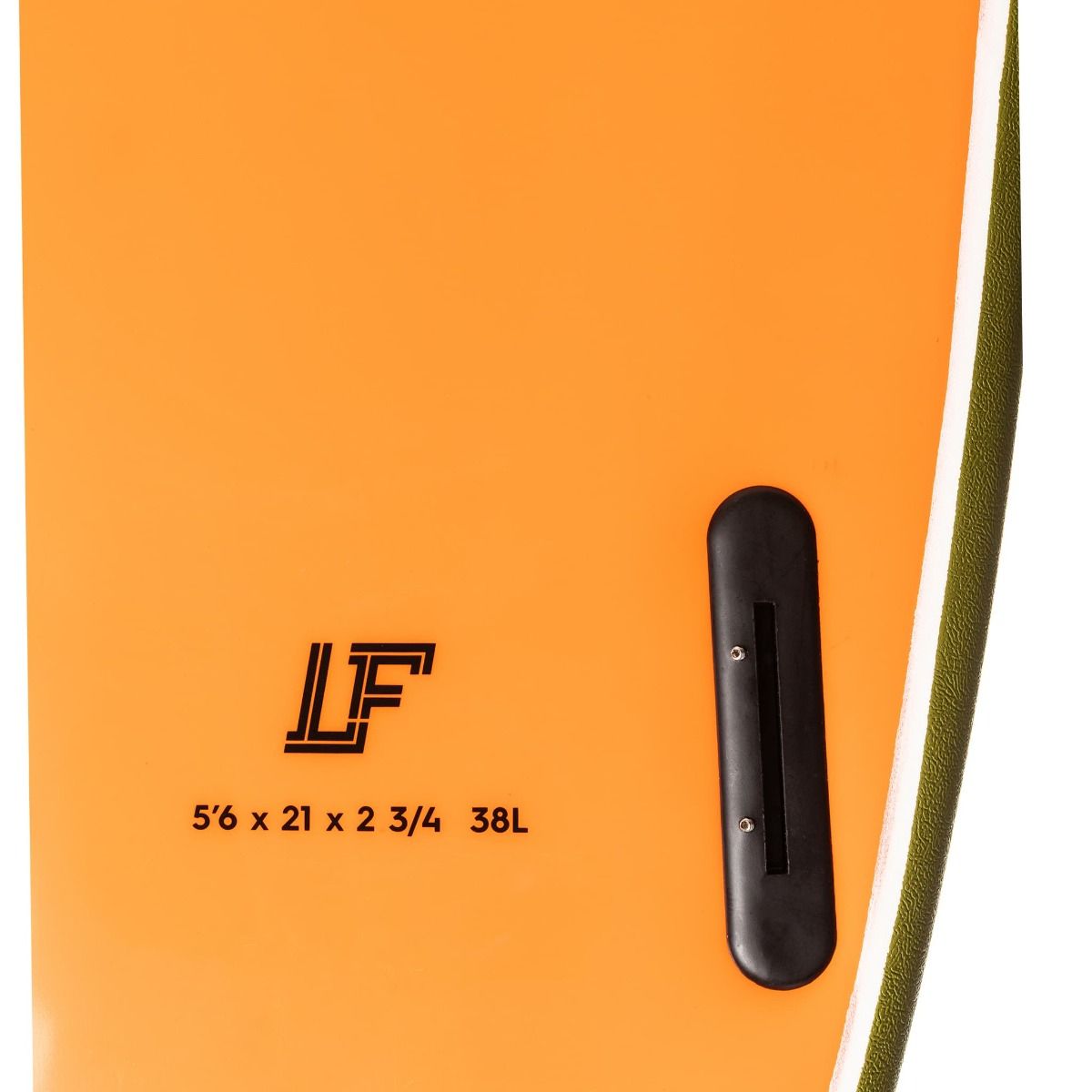 La Softboard LF Pro Rider 5'6" cuenta con quillas Premium Quiksilver Thruster extraíbles, grip incorporado con kick y cola Quiksilver SuperGlue en los cantos.
