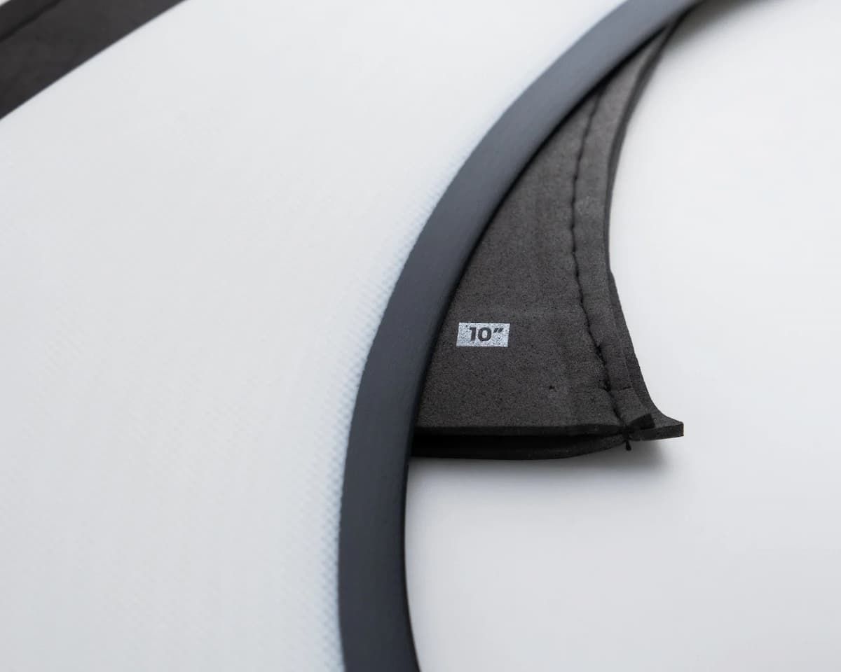 Quilla de longboard Bell de 10" en color blanco, fabricada en fibra de vidrio para un rendimiento suave y controlado en olas largas y suaves. Ideal para quienes buscan líneas limpias y elegancia clásica.