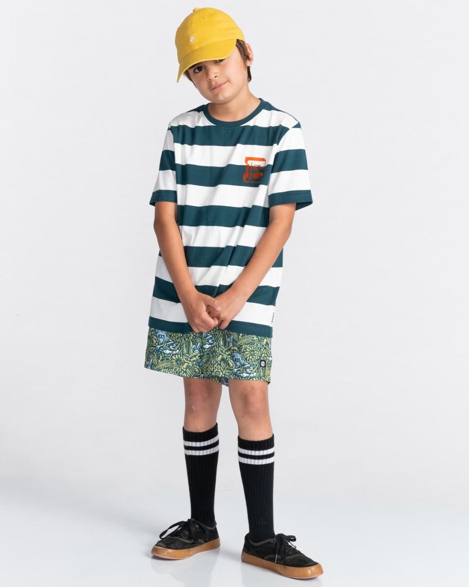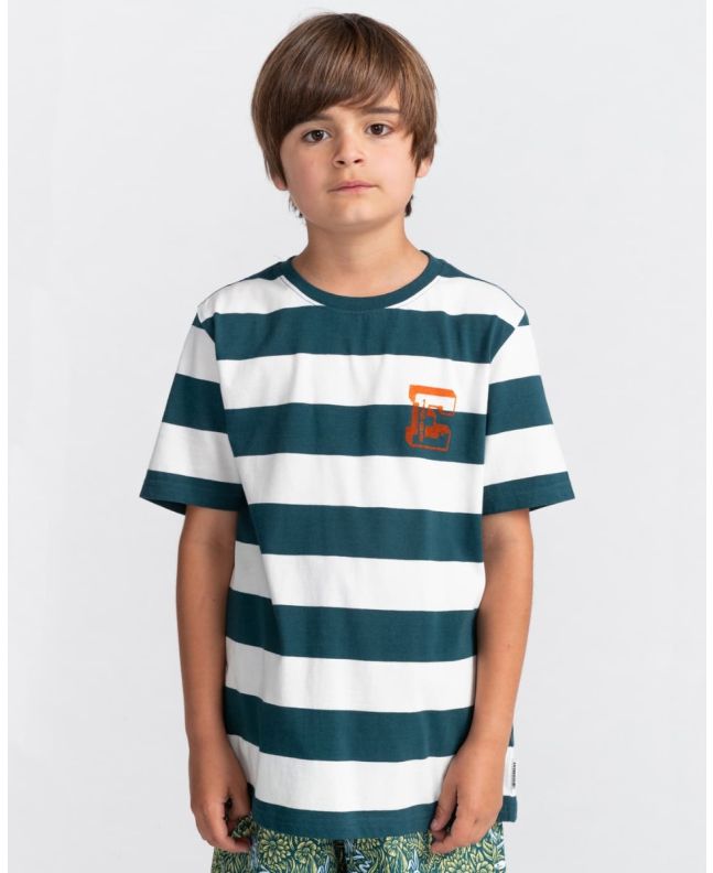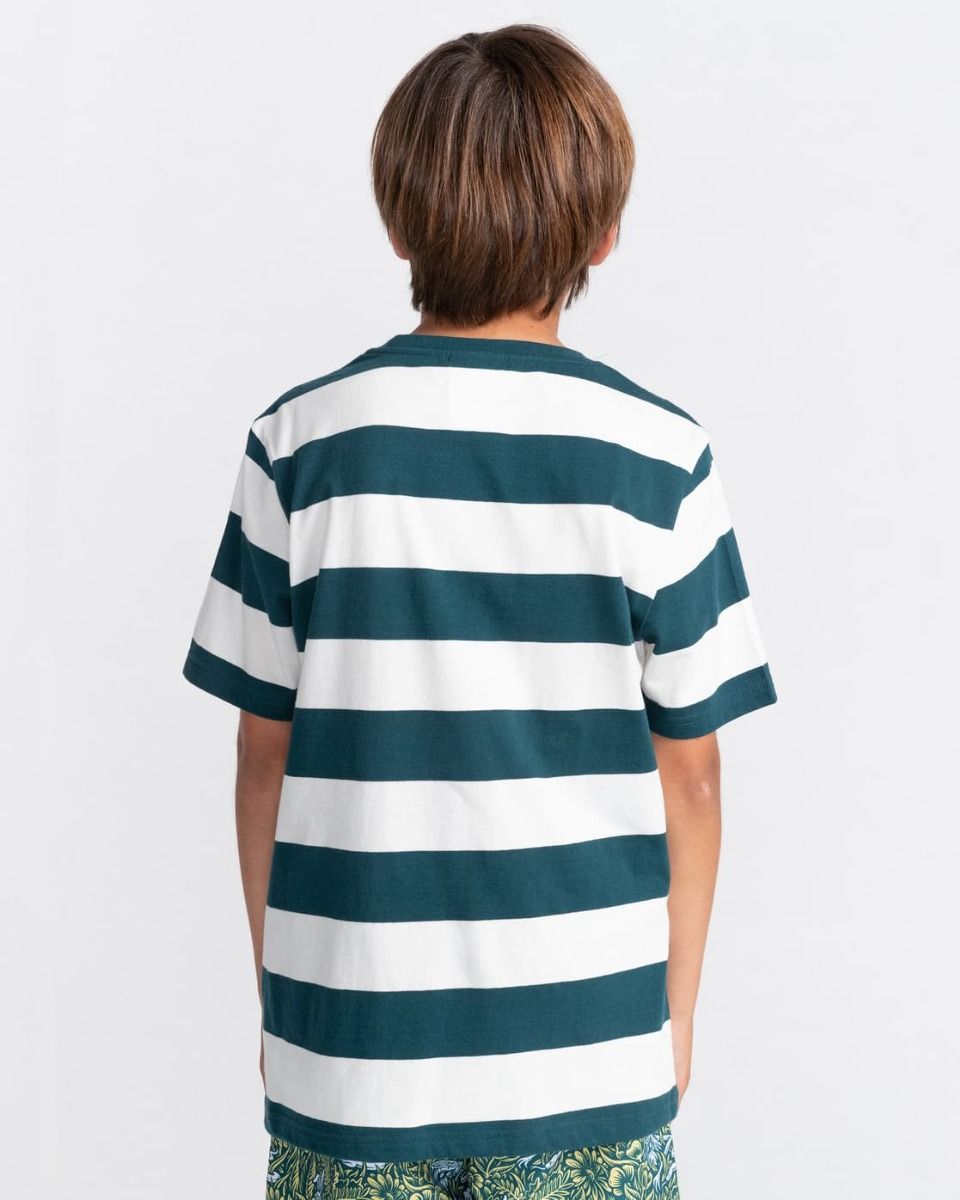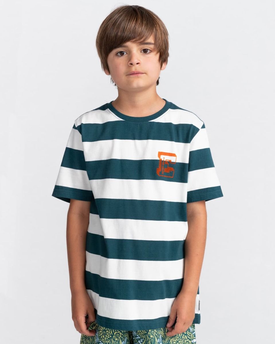Camiseta orgánica de manga corta Element Rodrigo en color turquesa con rayas blancas para chico (8-16 años)